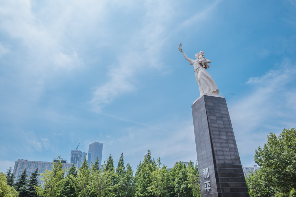 (三)和平公园区:该区以和平为主题,是世界各国人民进行和平交流的重要场所。包含胜利之墙、和平公园、汉白玉雕塑《和平》、紫金草花园、日本友人植树林等。