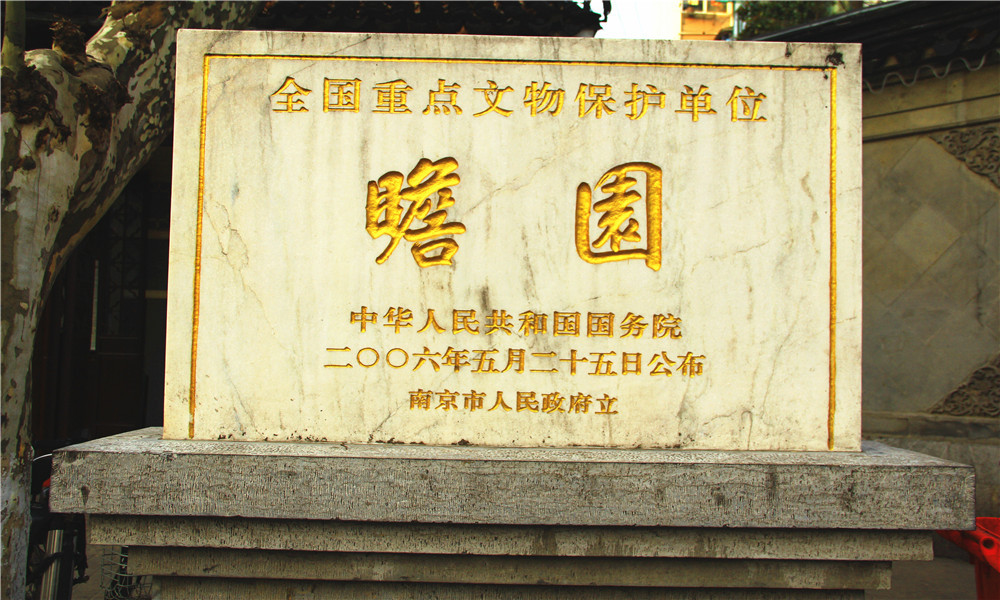 乾隆皇帝巡视江南,曾驻跸此园时,御笔题字“瞻园”匾额。