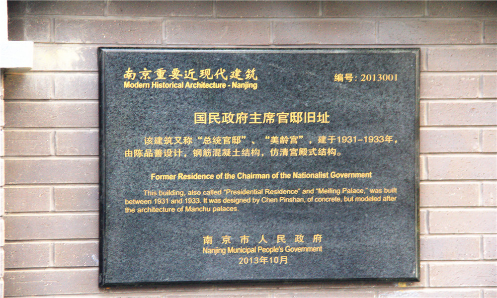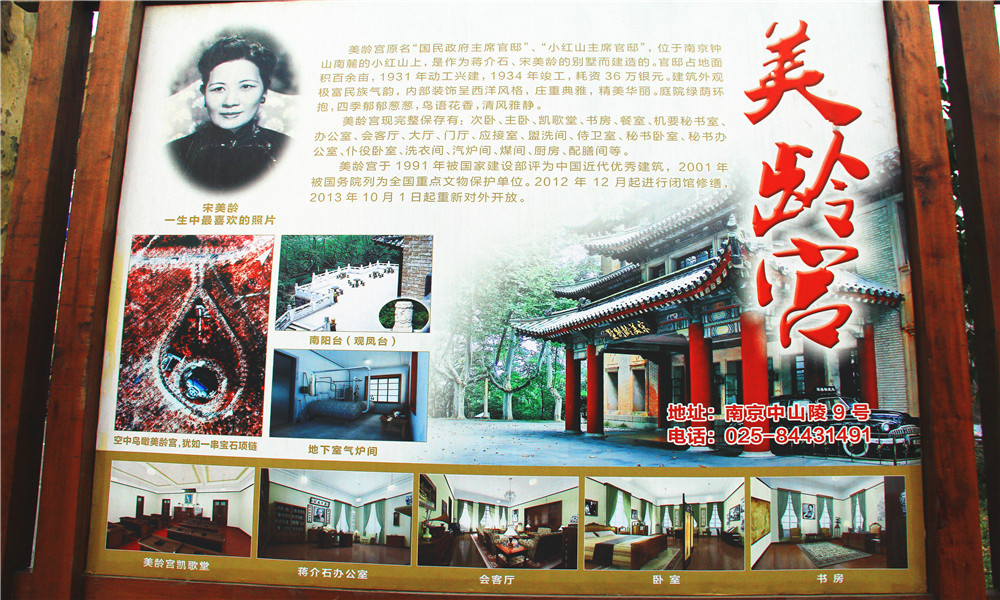 国民政府从重庆迁回首都南京后,蒋介石与宋美龄常在此下榻礼拜、休息,便称之为"美龄宫"。
