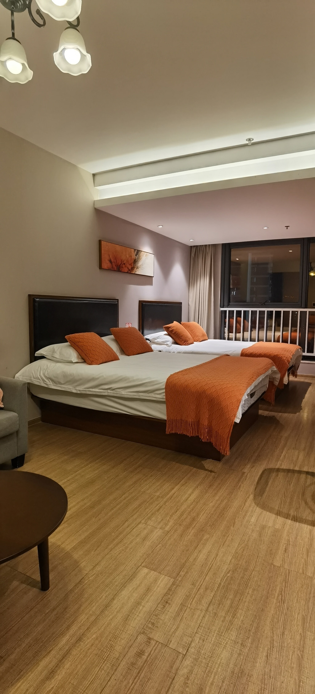 前往住宿之处,喜玛云宿,予期待值一样,宽敞明亮,两张大床,虽靠路边,隔音设备到位,很安静,整整一套小型单身公寓,各种设置齐全,冰箱,洗衣机,电视等等一应俱全,贴心之处书架,书香浓郁,停住旅程脚步,休闲看会书,辛苦一天得予放松休息,养足精神。