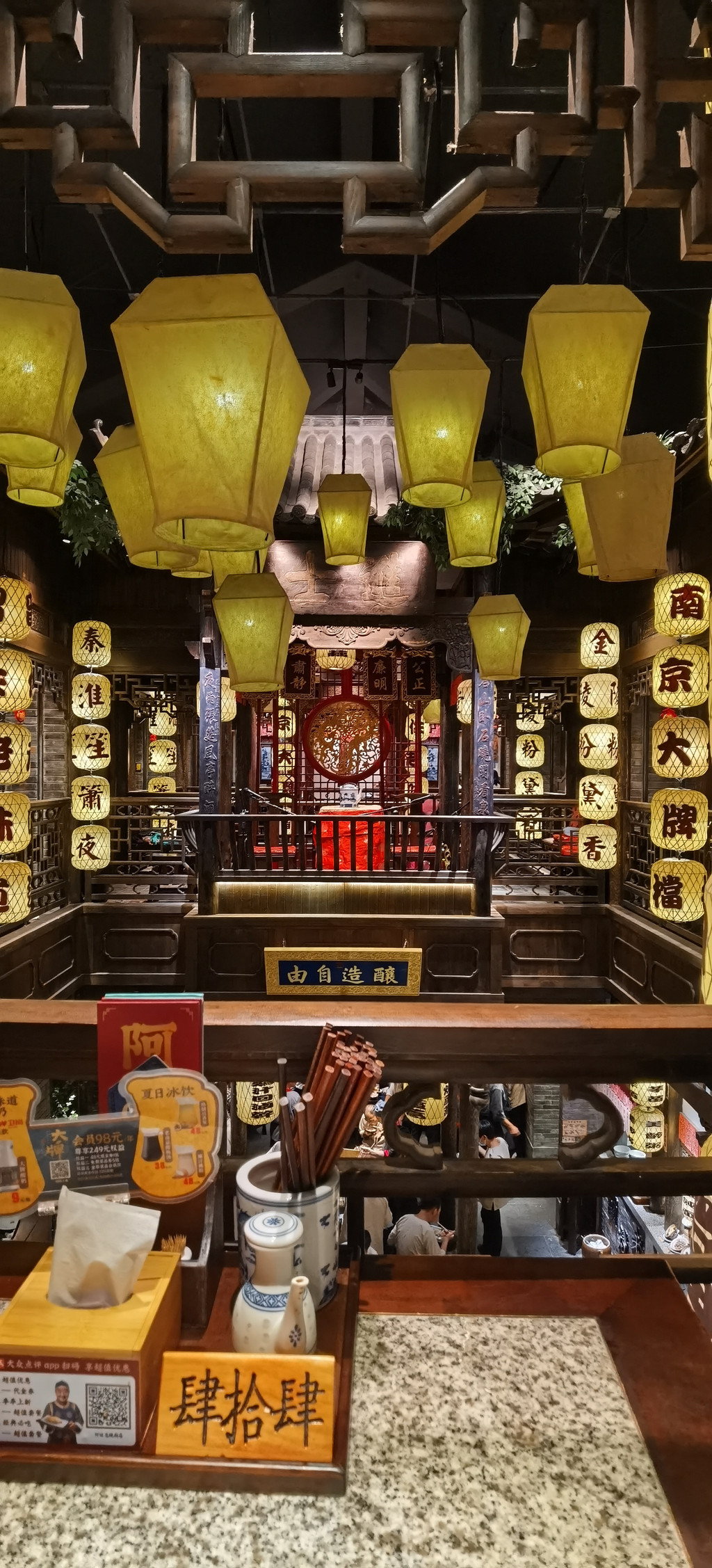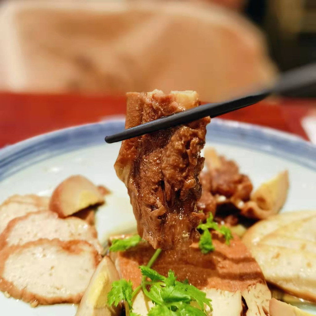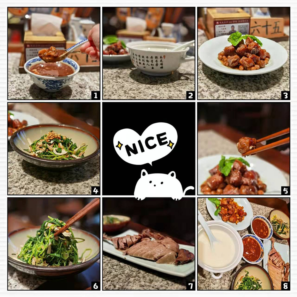 南京韵味特色,黄灯笼照射之下,更显南京旧时韵味感,话说还有说书的,这次没遇到,菜单分红与白之分,红色是必点菜品,酒酿赤豆元宵必点之南京特色小吃之一,民国美龄粥,排名不错,口感香甜,香干马兰头不建议,金牌梅香排骨,话梅香气酸爽可口,盐水鸭,南京特色菜品,必点之,滑嫩肉质中透着鲜美,微咸感带着细腻肉质感,好吃哎,南京素什锦,也是南京小吃之一,必点之。哈哈,其实是素菜,豆芽等之类炒之,