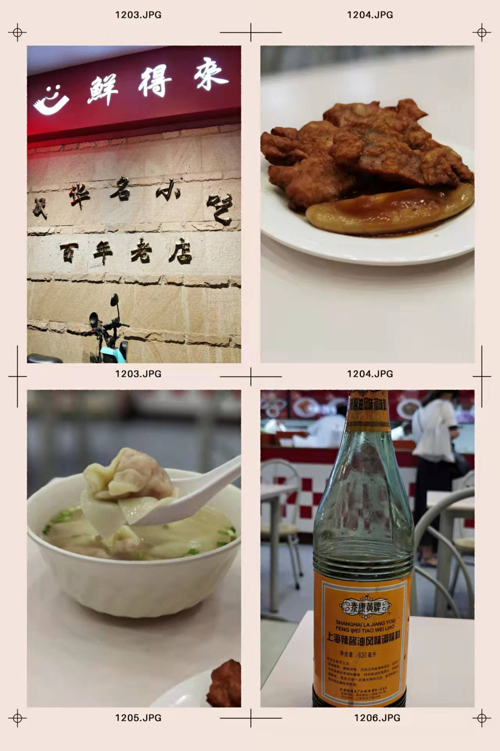 夜晚至淮海中路购物,购买当地特产,于鲜得来尝试年糕及排骨,鲜肉馄饨,皮薄馅饱满,清爽可口,年糕糯口,排骨炸鲜脆,用上上海辣酱油风味调味料,可蘸,可滴上馄饨内,味道极鲜极美。