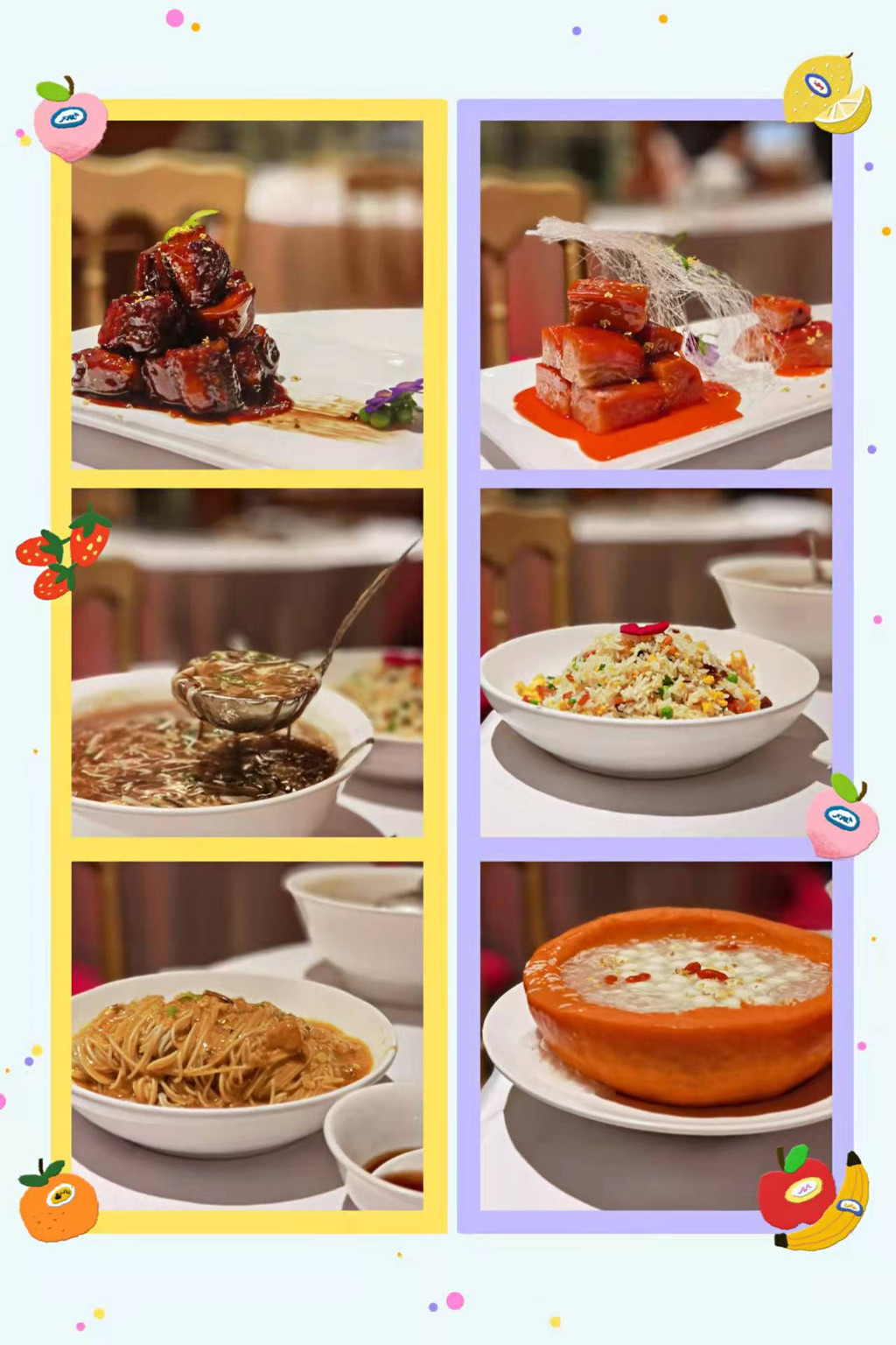话梅排骨,桂花糖莲藕,古法海鲜酸辣汤,玫瑰厅新淮扬炒饭,南瓜酒酿圆子,解粉拌面。喜欢排骨酸咸滑嫩其味,海鲜酸辣汤,鲜辣爽口,炒饭也不错,粒粒晶莹剔透,超级香,饭后甜品的酒酿圆子,养颜美容之佳品。
