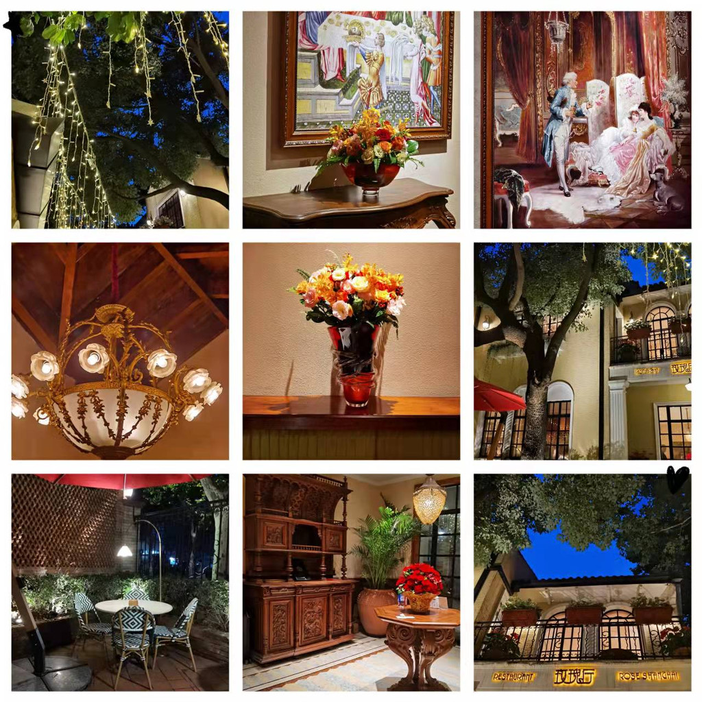 朱家角古镇歇角后,夜晚打卡必吃榜,玫瑰厅上海本帮菜系列。花园灯光照射,尤如闪耀星星般,其内,浓郁家味道,各种旧时图展,花摆,甚是美观。