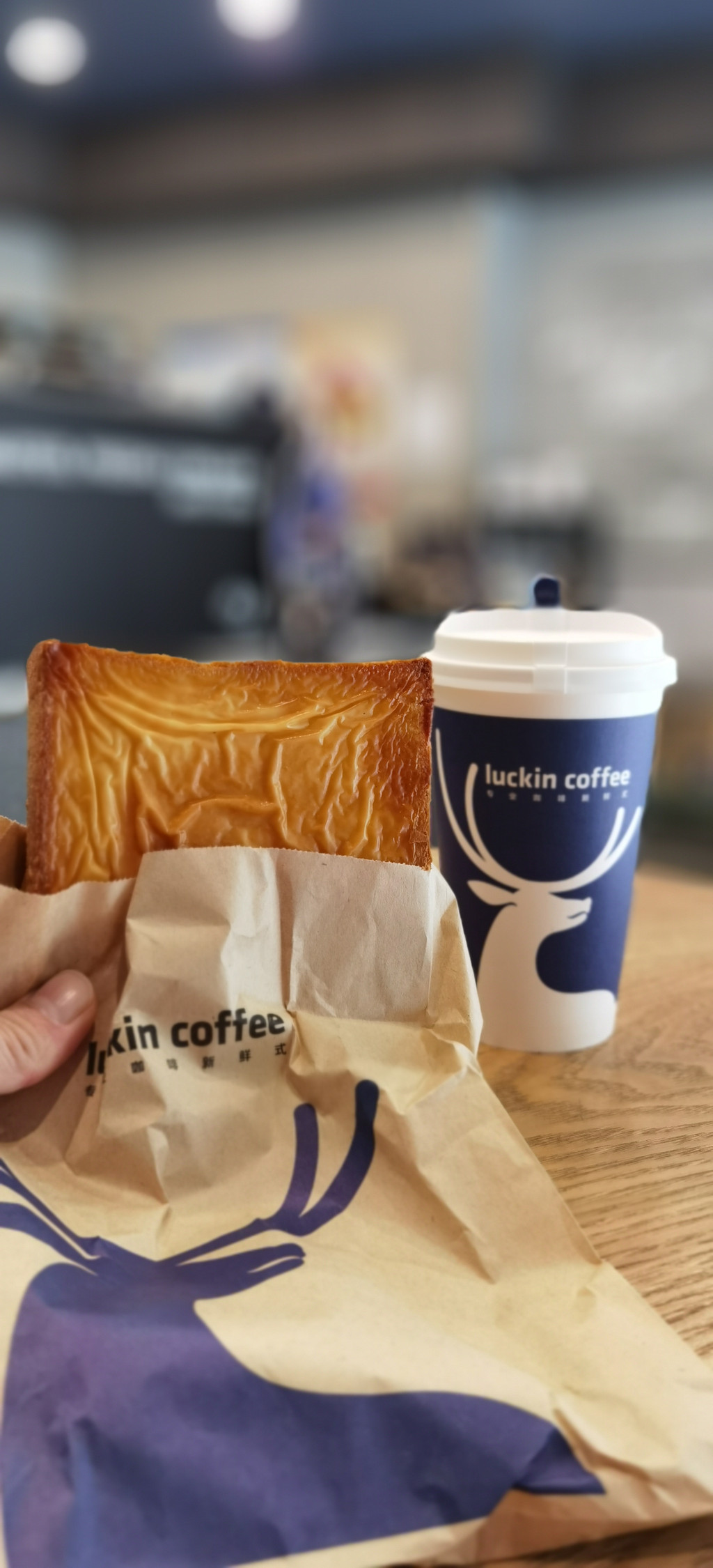 早晨的我,喜欢甜食,搜索酒店附近瑞幸咖啡,来杯香甜可口咖啡,带上吐司,美好一天旅程又开始。