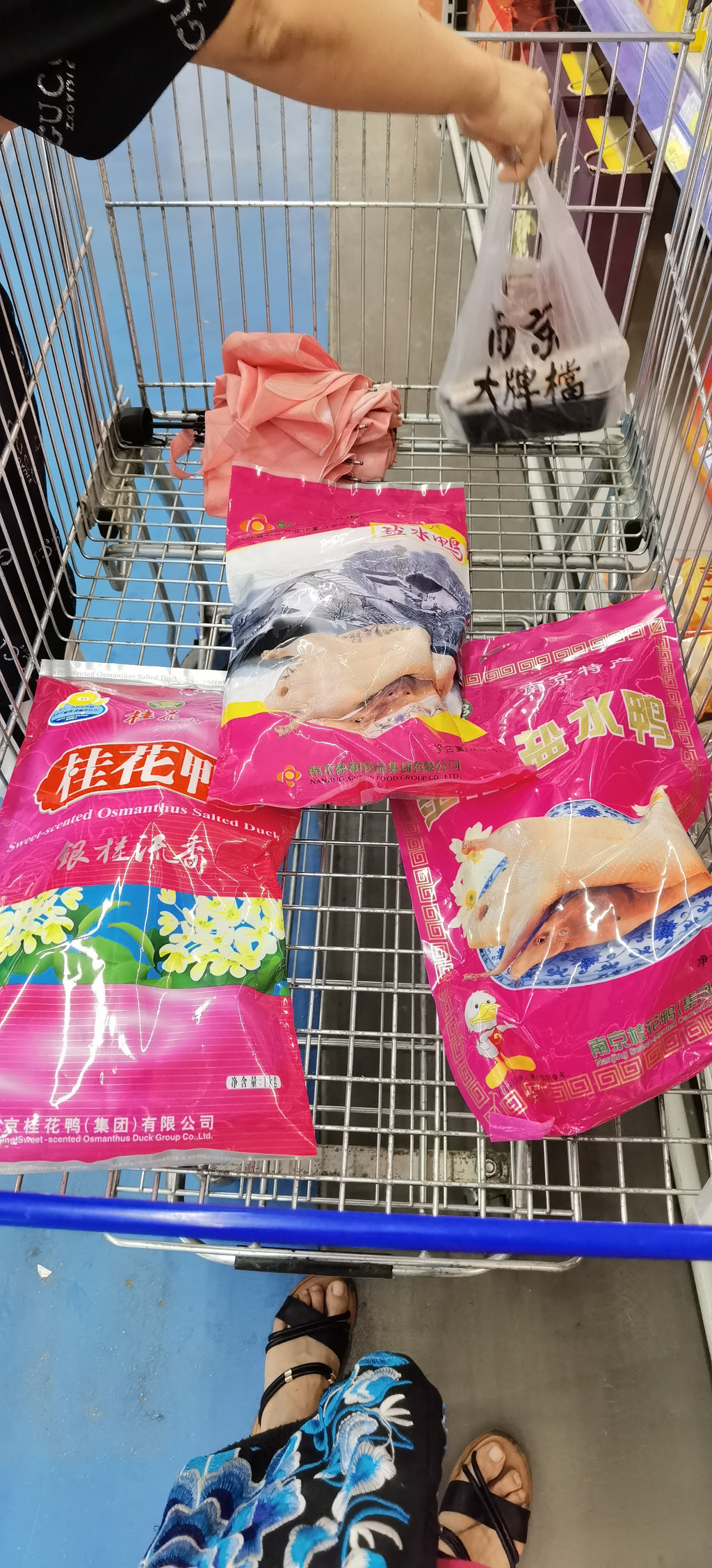 来南京必带点盐水鸭特产回去,搜索到酒店附近,有麦德龙雨花石店,奔上它带上盐水鸭,记得点桂花石出品(48元/3只/95折)相当划算。