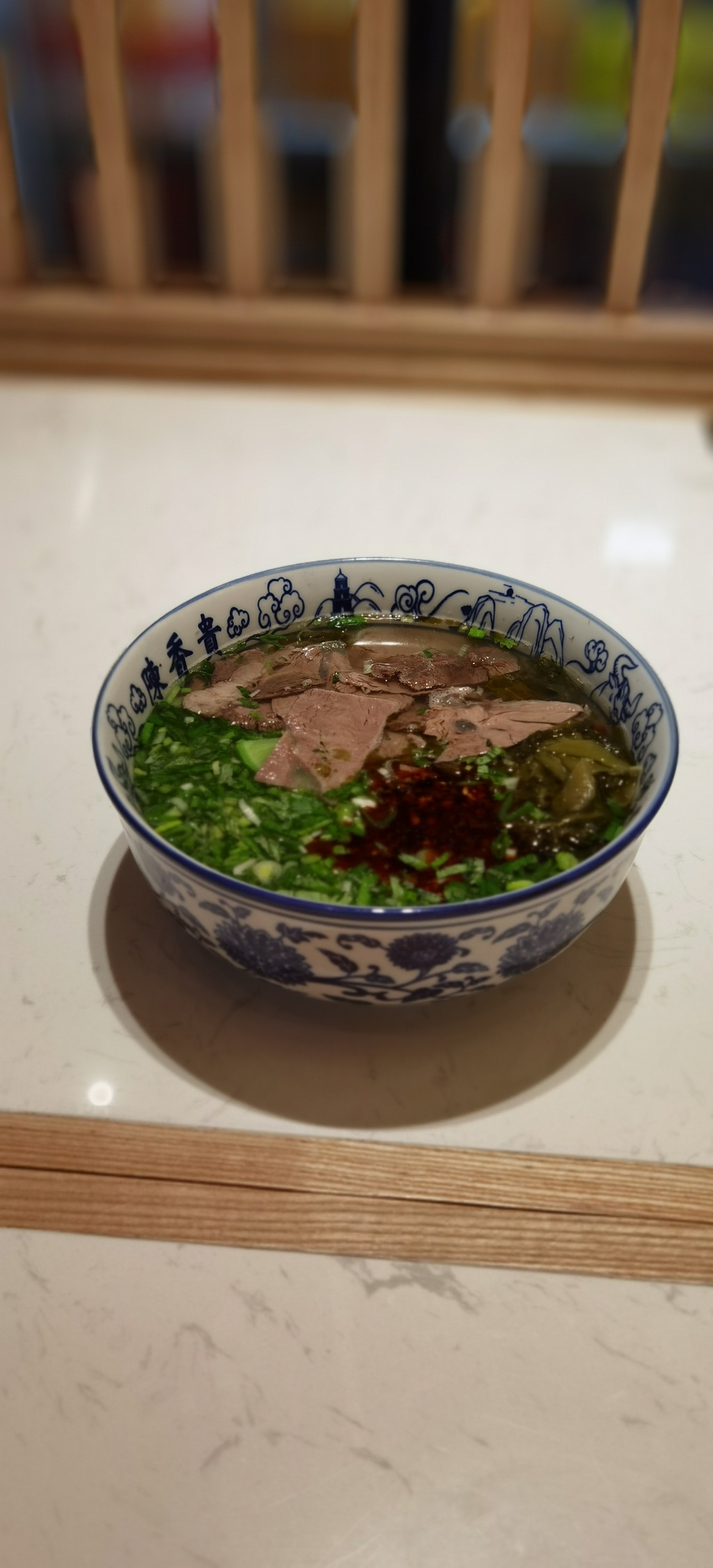 酸菜牛肉面,滑嫩牛肉份量好多,Q弹面条,酸爽汤水中渗透入面条,面条Q弹酸爽,甚是开胃,茶叶蛋带上一颗,那种满足感爆鹏。