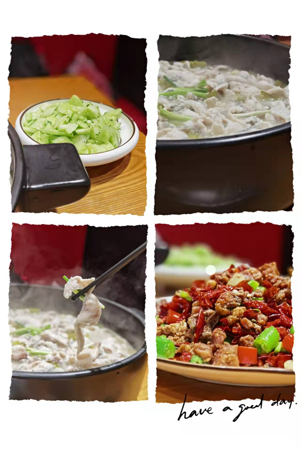 回到酒店附近,谢小胖手工酸菜鱼,想来点开胃菜酸菜鱼,想念起那股酸爽,团购平台上团了份双人餐,份量之足,两个人吃不完,可酸菜鱼口感及辣子鸡,有点踩雷节奏。
