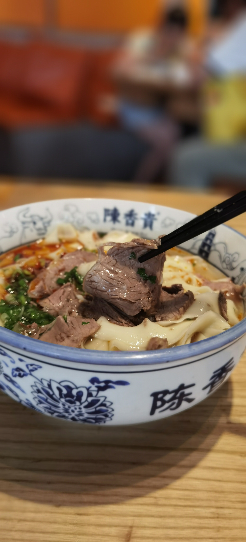 一人食较为简单,出外面美食陈香贵兰州拉面,一碗香喷喷牛肉面条,粗犷Q弹面条,微辣口感开胃。
