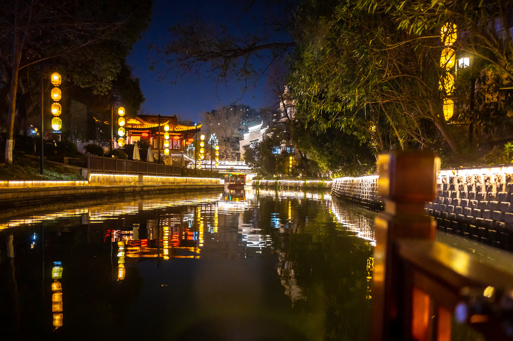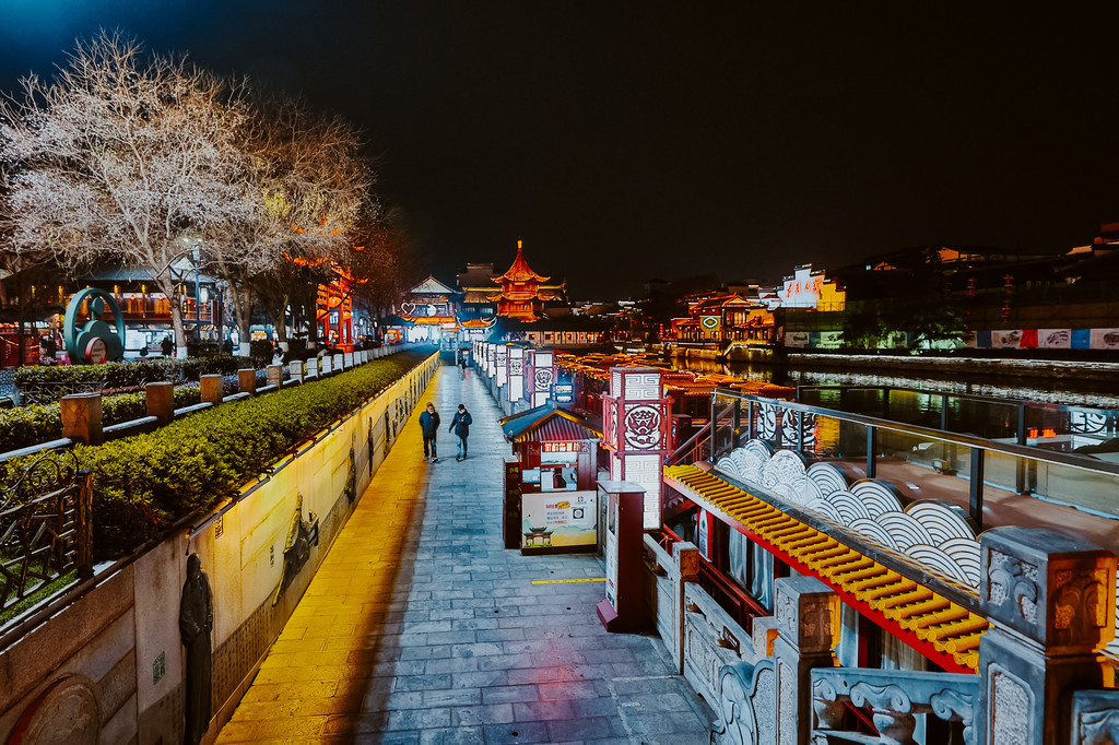 自古以来,众多文人墨客为十里秦淮留下了脍炙人口的诗篇,最著名的当属杜牧的《泊秦淮》,坐在画舫上,眼前建筑上的灯光及那屋檐下一串串红灯笼倒映在秦淮河水中,此情此景,真的会给人一种“烟笼寒水月笼沙,夜泊秦淮近酒家”的意境之美,整个人恍若穿梭在六朝烟火月间,那景色让人迷离,让人又十分享受。