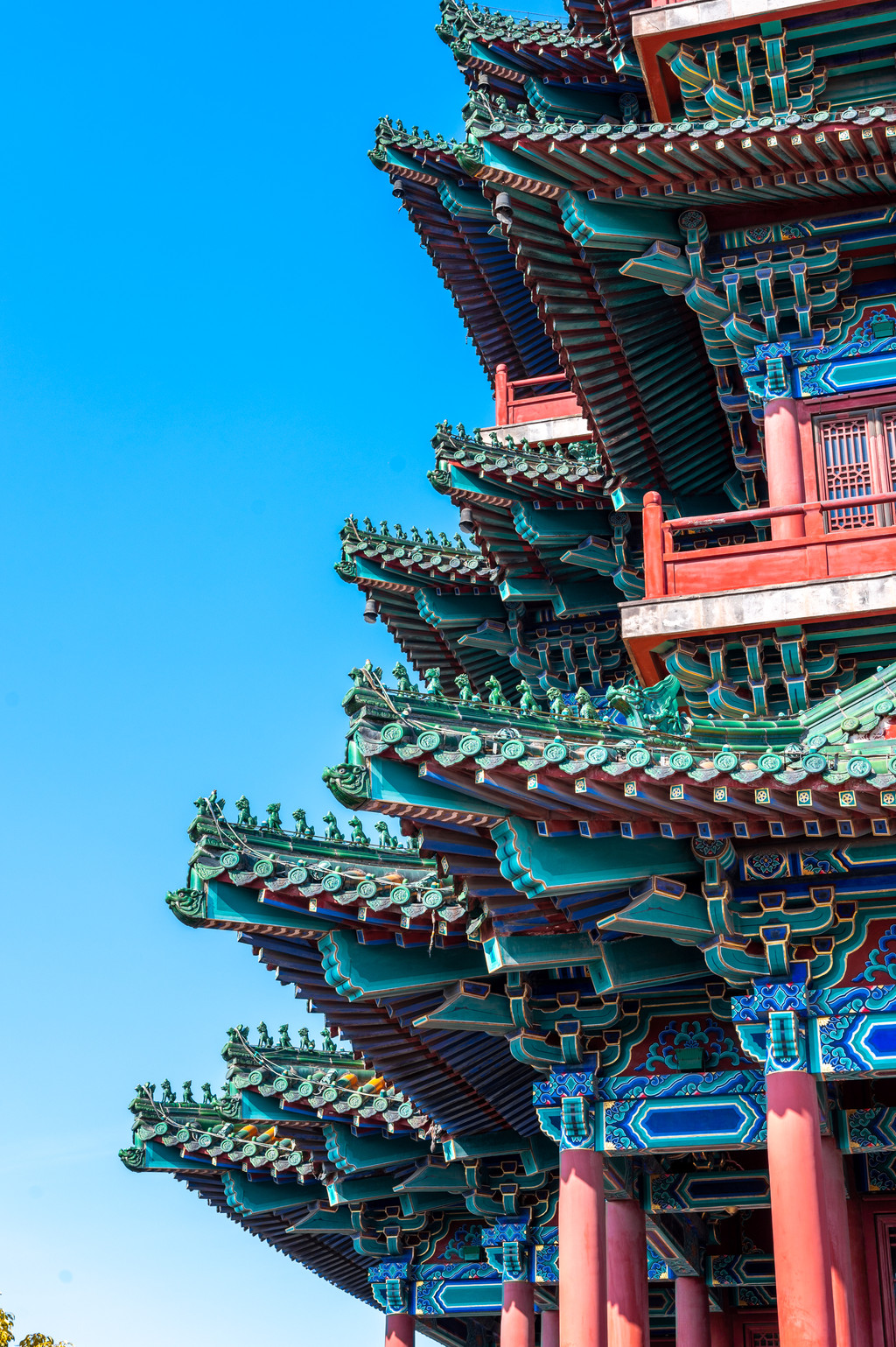 登顶阅江楼,恍若明白了其名字的含义,阅江揽胜正是其意,而这里恰好也方便近距离欣赏楼阁檐角,阅江楼屋顶犬牙交错、跌宕多变,与以往所见的古建筑有很大的不同,再加上那覆盖满楼的镶有绿色琉璃瓦的金色琉璃瓦,黄色、绿色与红色的碰撞,彰显其皇家气息。
