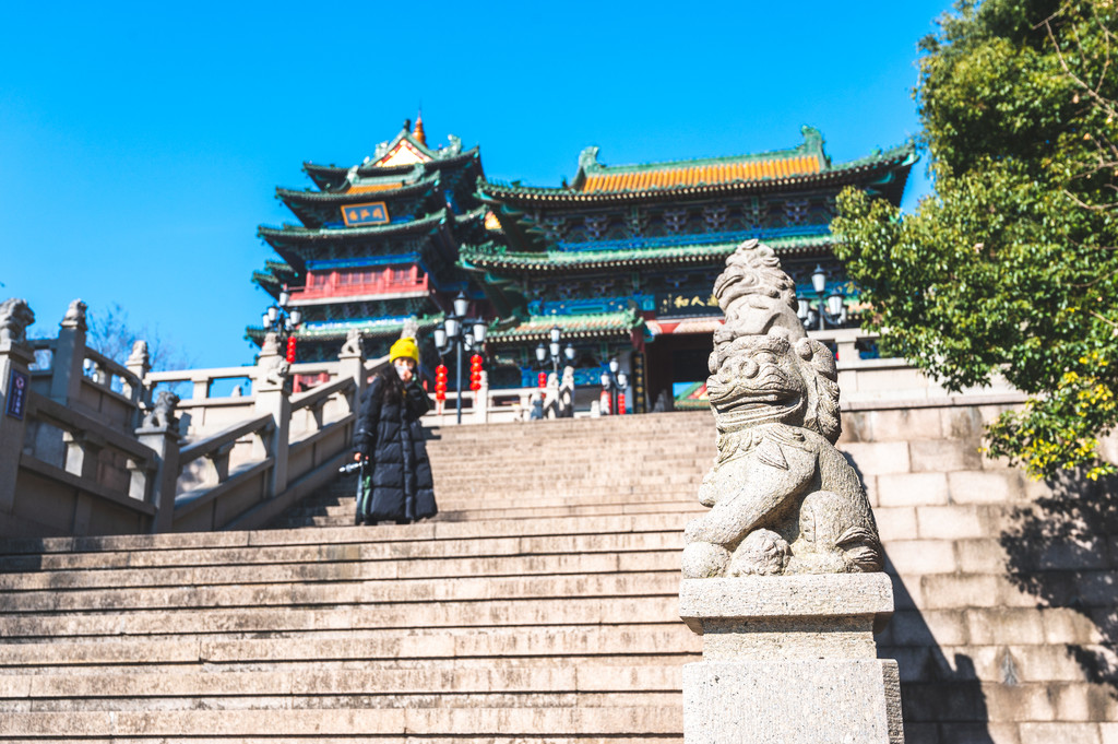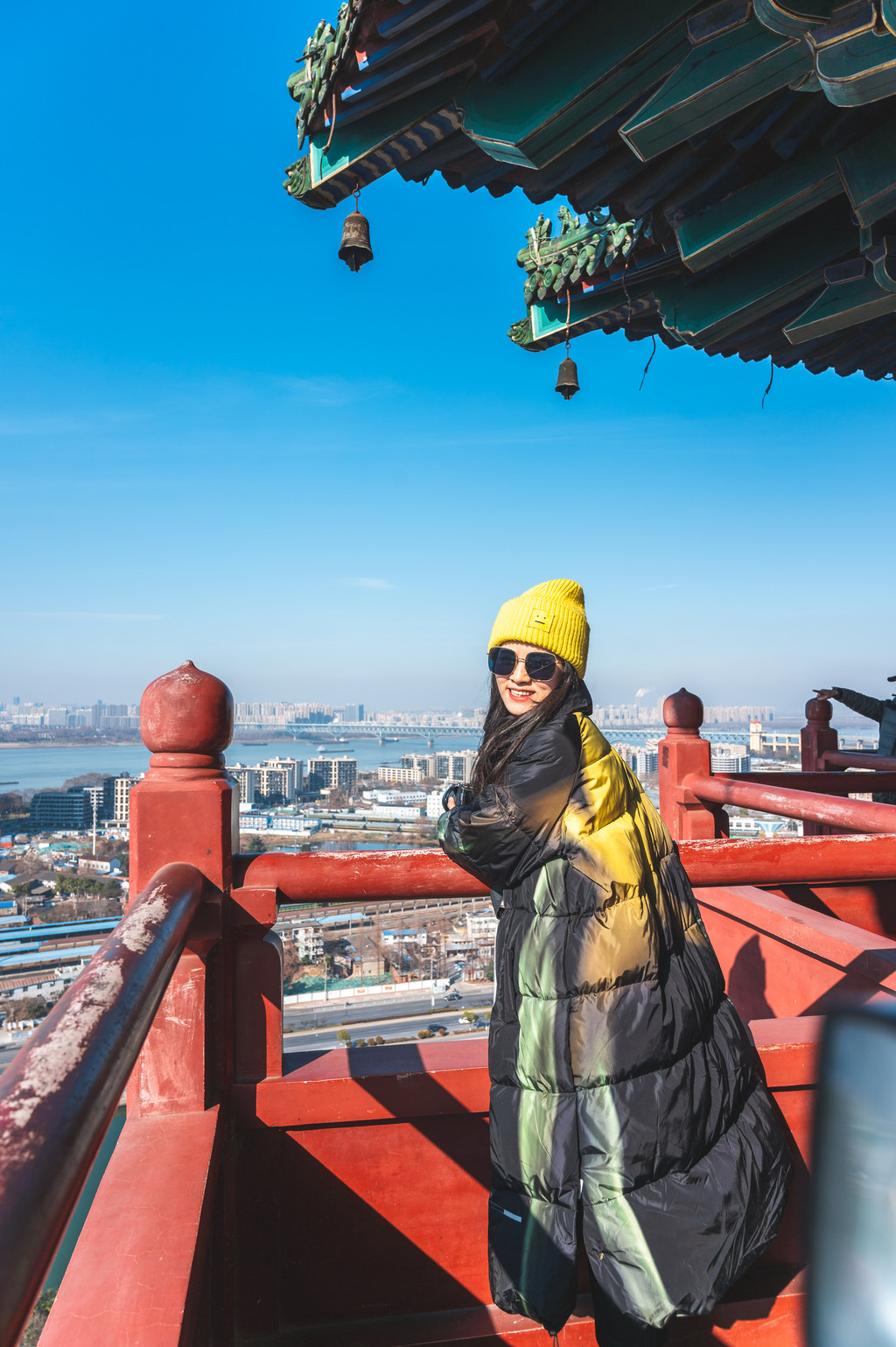 若是喜欢拍照,在顶层还有一处拍人像照片的绝佳地点,这里取景可以把楼阁檐角、扬子江及长江大桥全收入到画面中,古典、大气之美萦绕在身体四周,让人心旷神怡、流连忘返。
