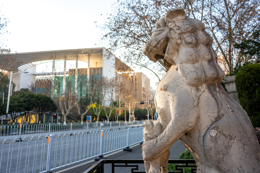 在六朝博物馆对面的江苏省美术馆,它的前身就是不远处的“国立美术陈列馆旧址”,始建于1936年,是中国第一个国家美术馆。陈列馆主楼是一栋4层、呈“山”字形的建筑,融合了中西方元素于一身,看起来简约、庄重而不失文艺气息,如今也已是全国重点文物保护单位。