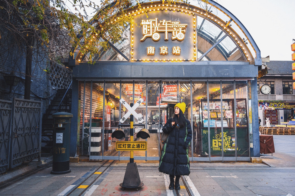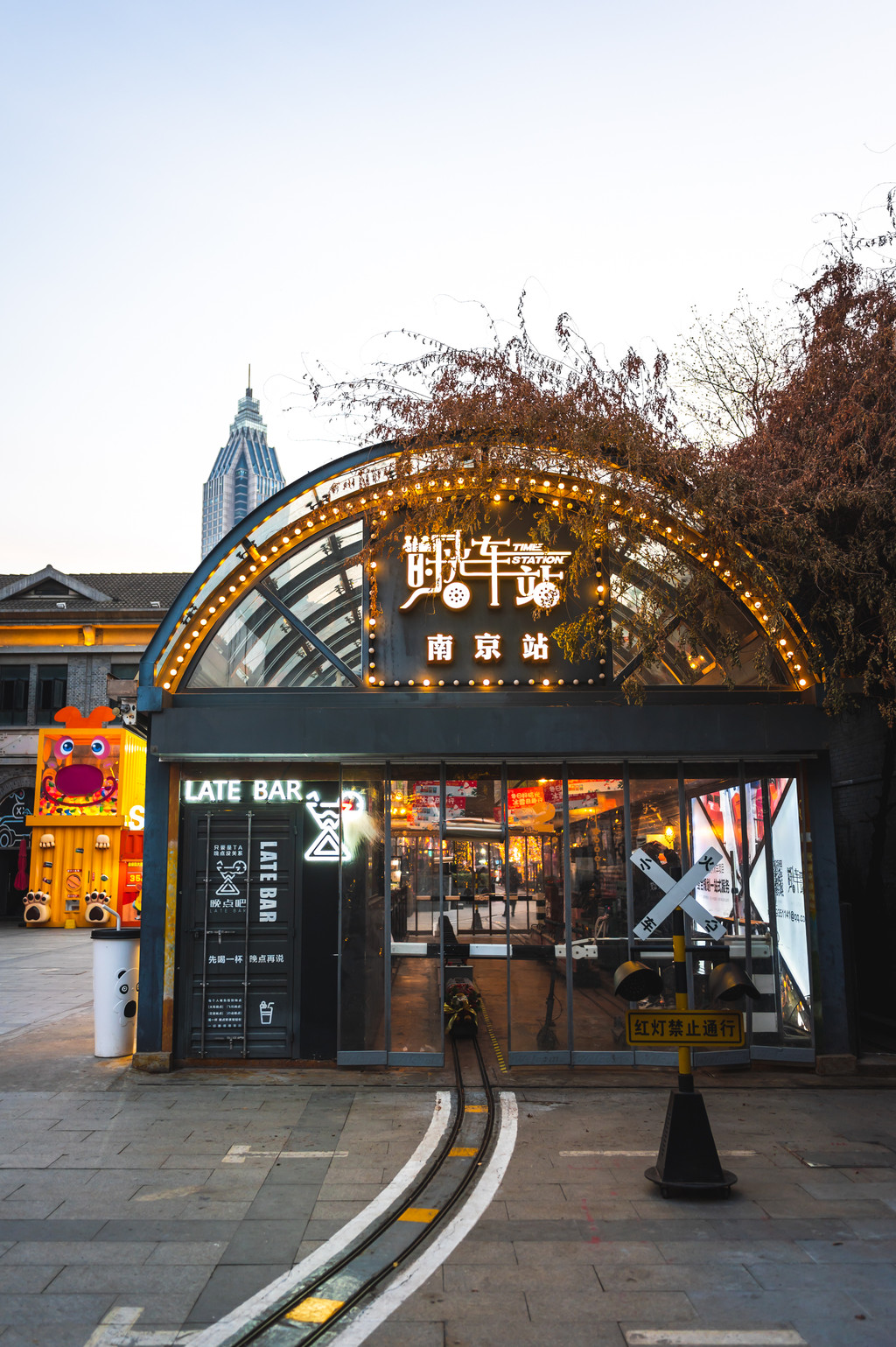 在这里还有一座小火车站格外引人注目,名字叫“时光车站·南京站”,车站设计非常复古,伴随着霓虹灯亮起,小火车开动了起来,环绕在1912街区,无论大人小孩皆可乘坐,若是来这里一定记得体验下,满满的复古气息。
