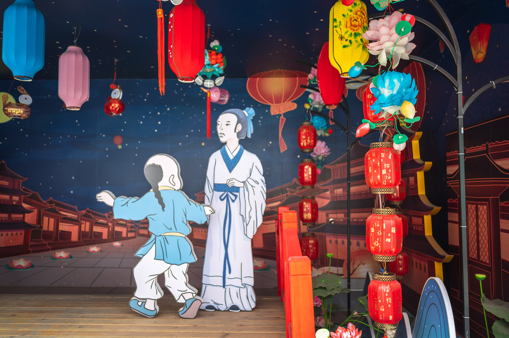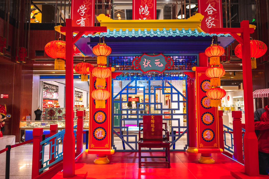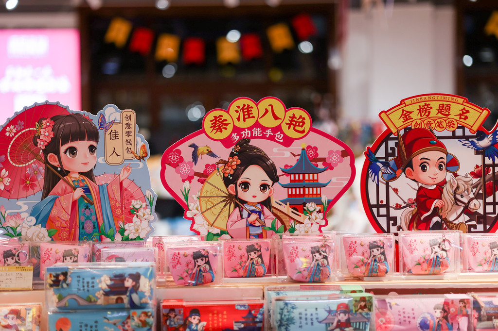 “秦淮礼物”主题店在江南贡院旁,一共有三层,一层是文创产品,二层是汉服及体验区,三层是极具文艺气息的当当书店,产品非常丰富,涵盖了淮灯彩、科举文化、秦淮风光、民俗非遗等主题。