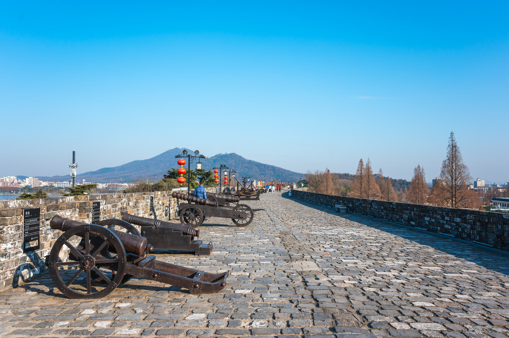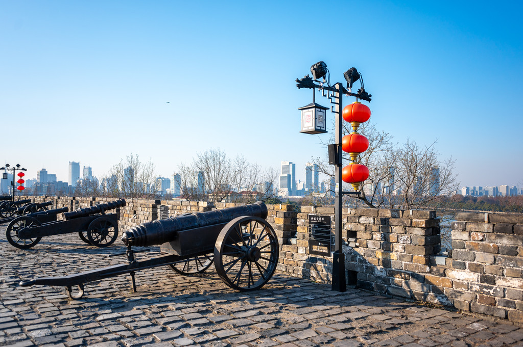 登上台城,看着眼前的火炮,不由得想起一段典故,1390年城墙建成后,朱元璋携大臣及皇子登紫金山观察城市形势,其中皇四子朱棣提出“紫金山上架大炮,炮炮对准紫禁城”,且城南雨花台、幕府山处于城墙外,于是有了后来的外郭城墙。