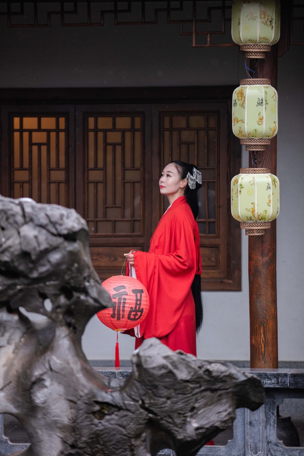 瑞雪兆丰年 ,这里也有着浓浓的年味,红色的汉服,红色的灯盏,相当应景。江洲大院还可以吃到 九江 特色菜,还可以预定全鱼宴,寓意年年有余。