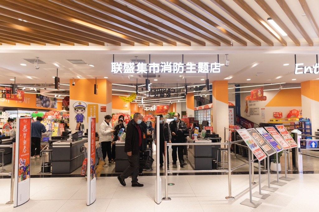 各种兔年的玩偶,手写的春联,福字也挂满了橱窗。写春联,迎佳节,祝福新春,人们都大包小包,将美好的祝福带回了家。