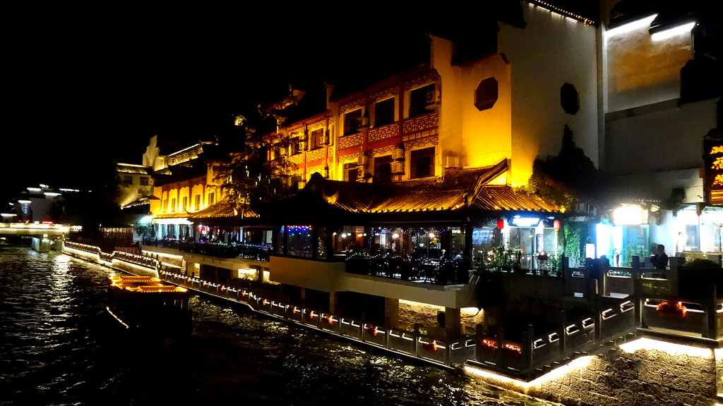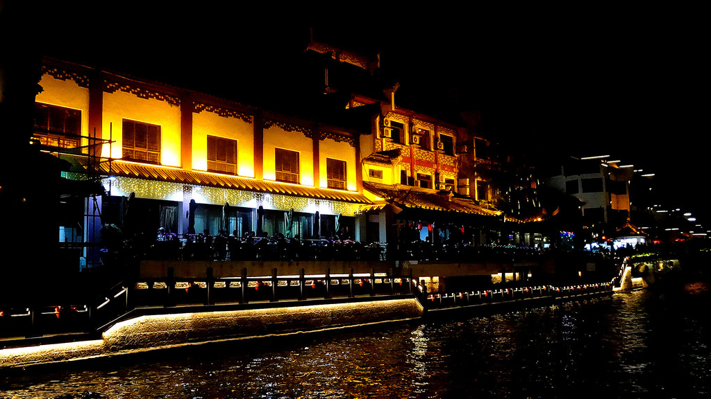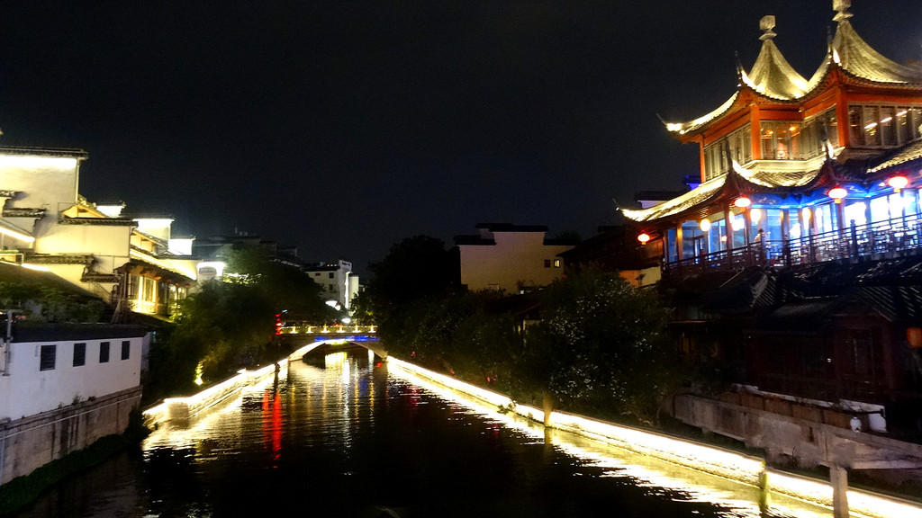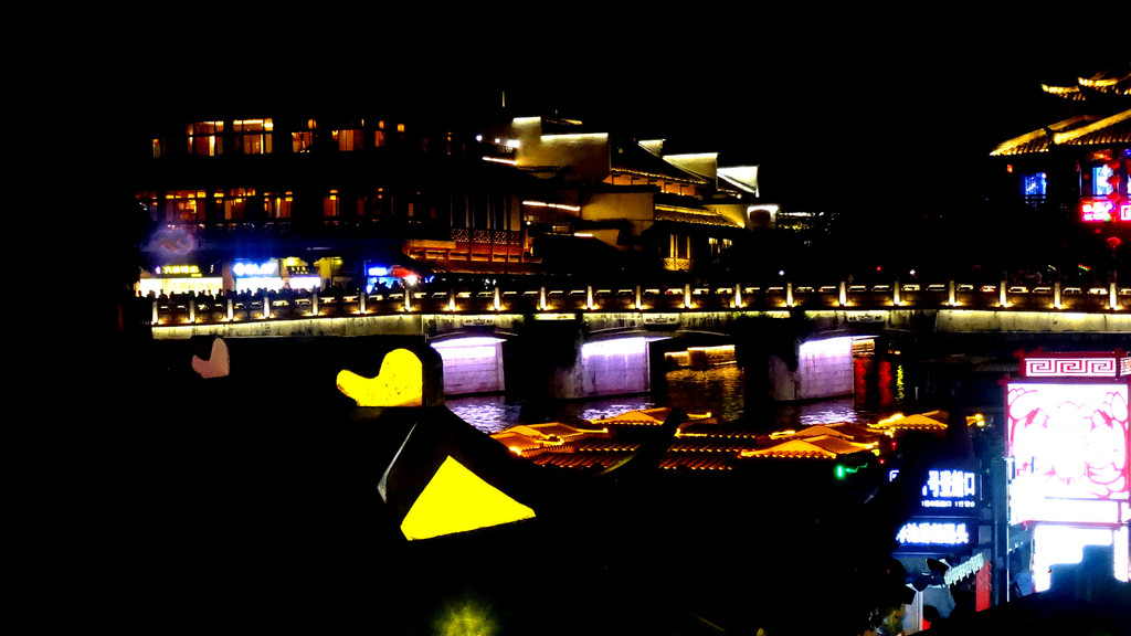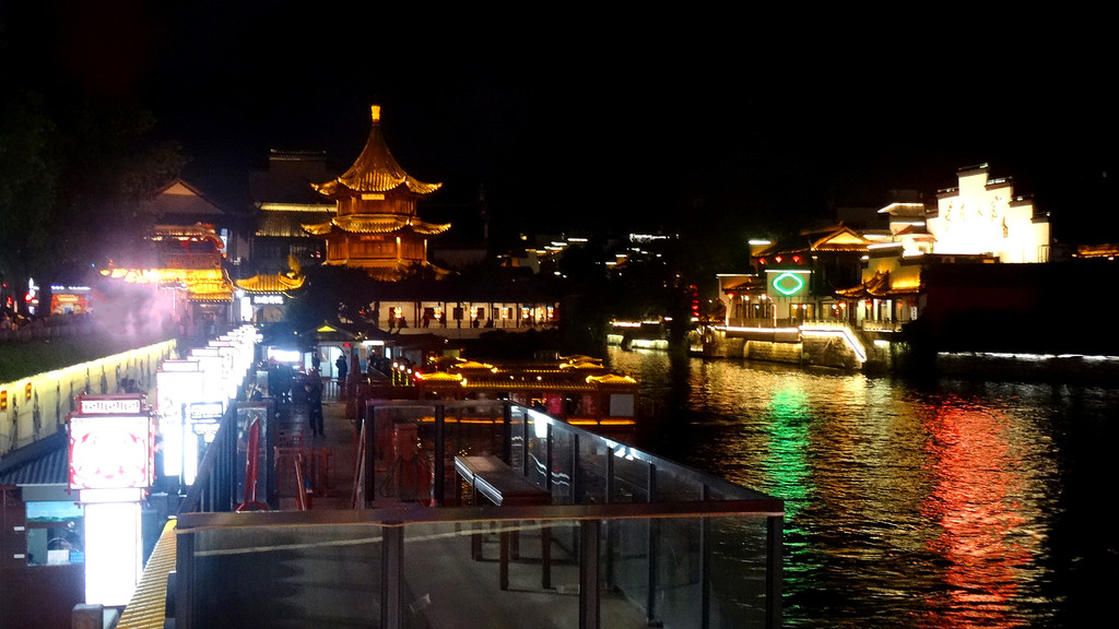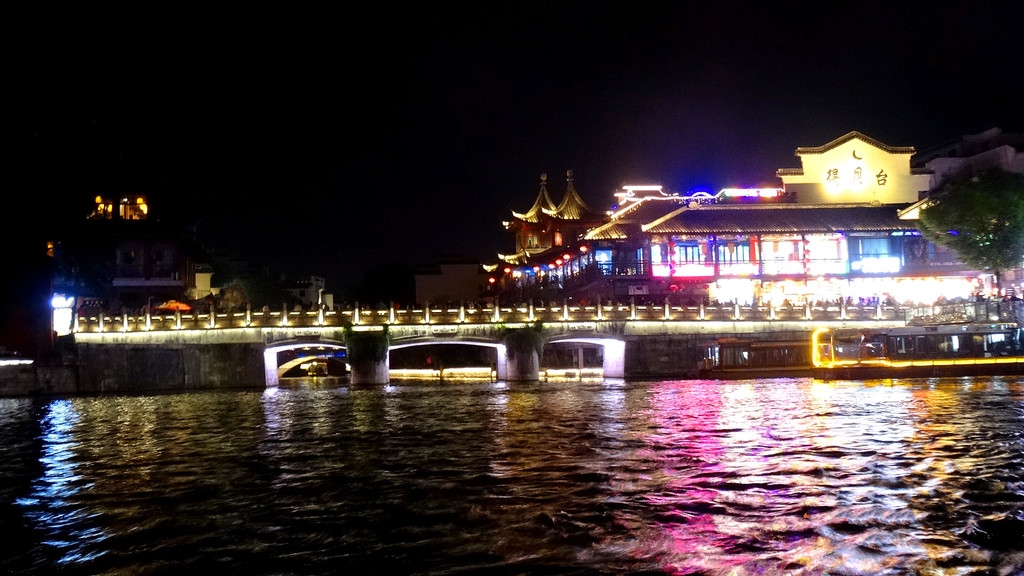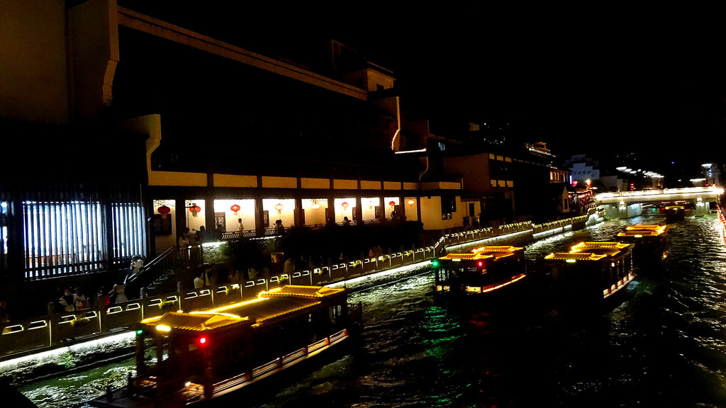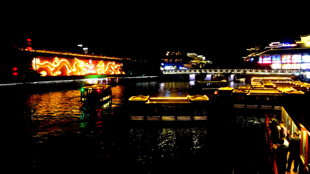沿着河堤初步认识了一下秦淮河,真有种“秦时明月汉时关”的那种境界,沿着河堤徜徉在秦淮河畔,看着河里游船踏浪前行,河两岸游人如织,灯火通明,真是人在画里游了,那种奇妙的感觉非身临其境而不可言传。
