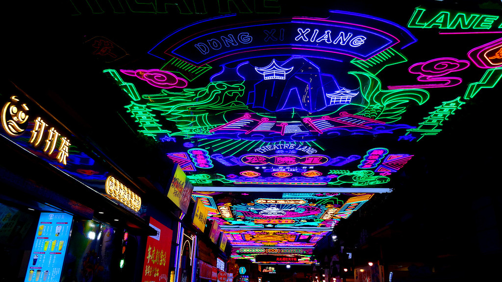 光的世界,是用镜头永远无法复制和展现的,游船悄无声息,可浪拍打在两岸的声音和着各色光线,构筑了一幅幅绝妙的画面