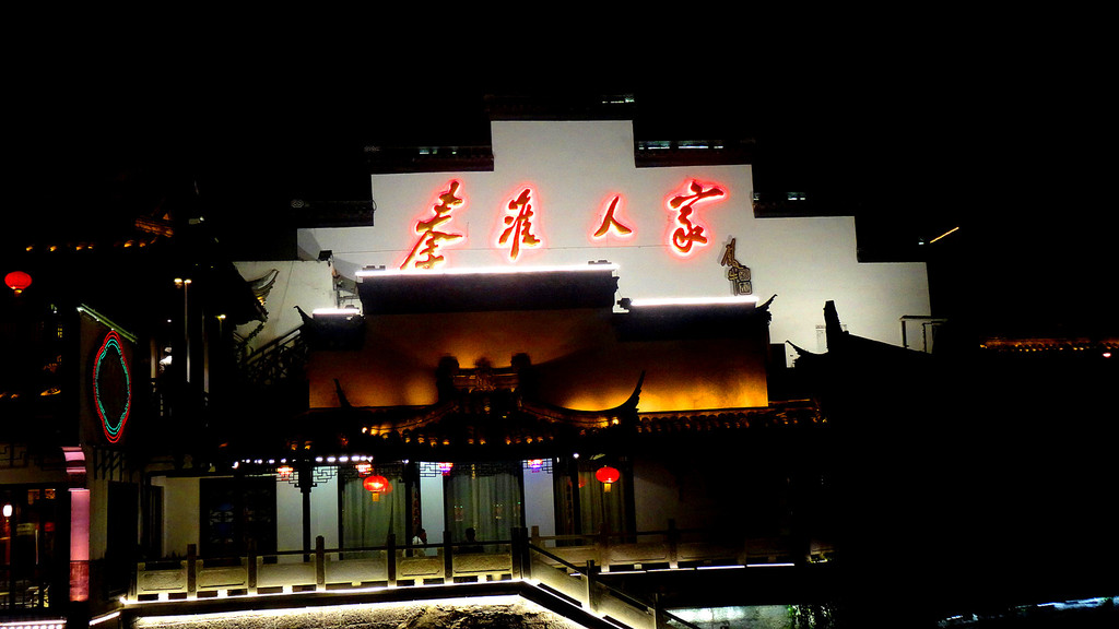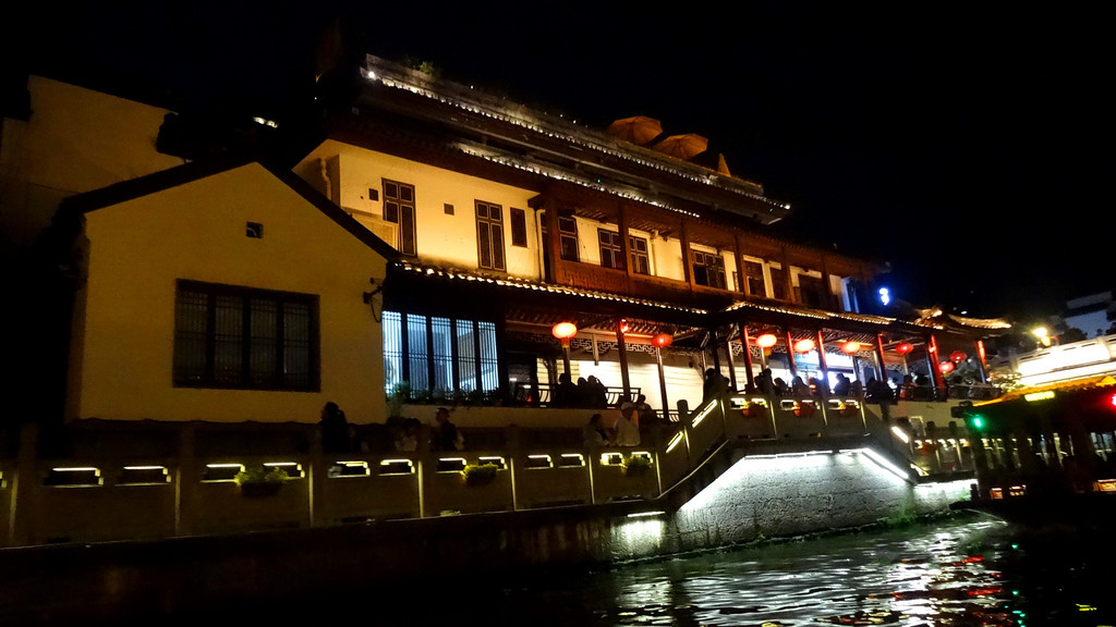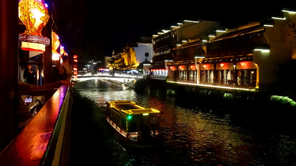 坐在船上和走在岸边,站在贡院顶感觉完全不一样,一个光怪离陆的场景随着游船缓缓变换中,近了,远了,远了,近了......一切都在变换中,一切都是期待的未知中,五月上旬气温恰恰好,点点凉风掠过耳际伴随着流水声整个人沉浸在温柔的秦淮人家的臂弯里。