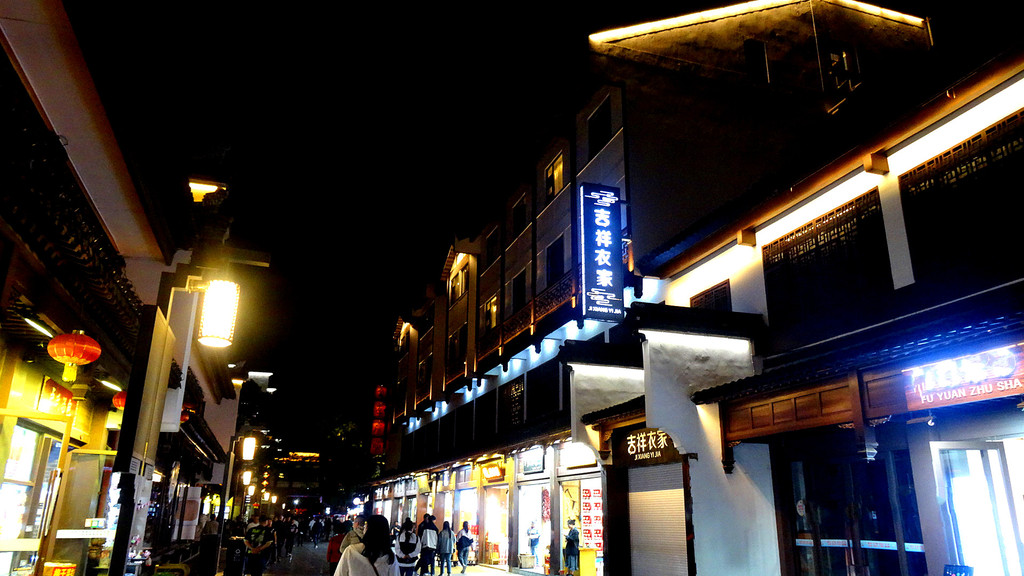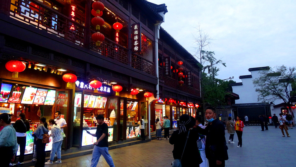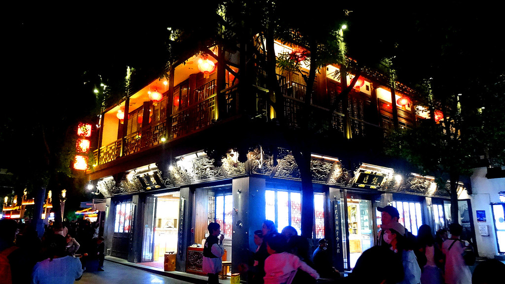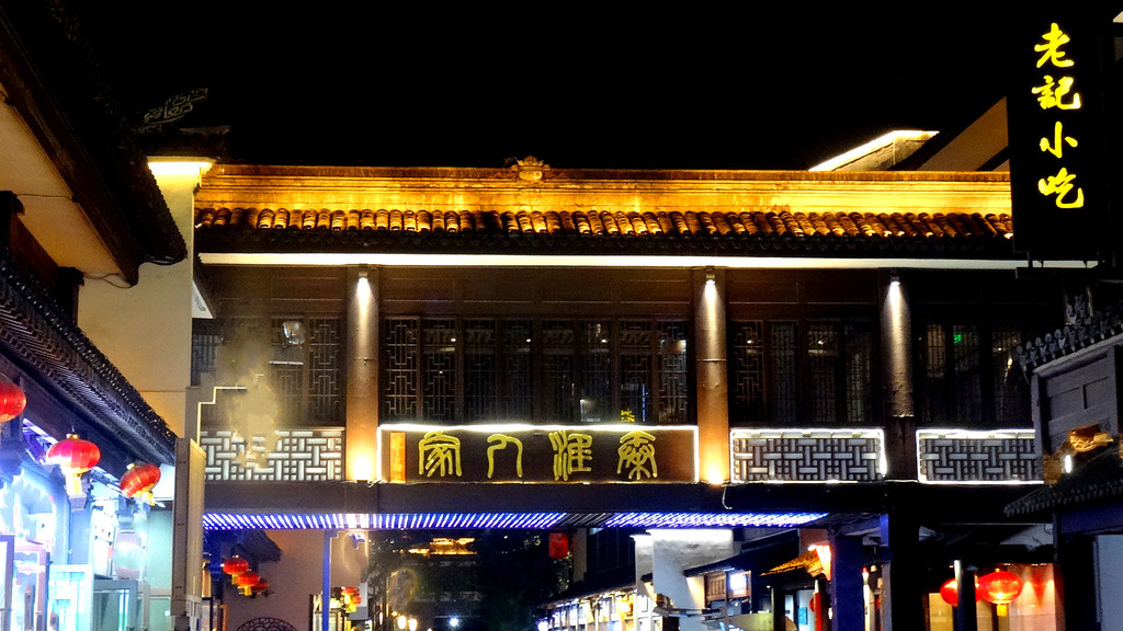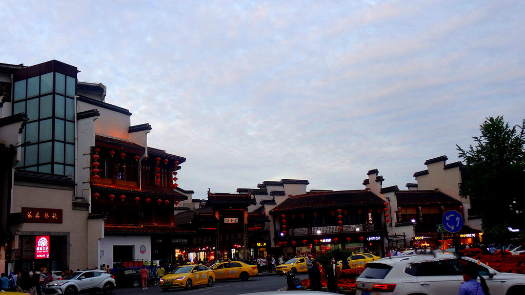天渐渐暗下来,可是人流却是越来越密集,古色古香的各色店铺都在忙碌,来这里看不到步履匆匆的景象,倒是慢悠悠的节奏,虽然热闹非凡却给人祥和宁静之美。
