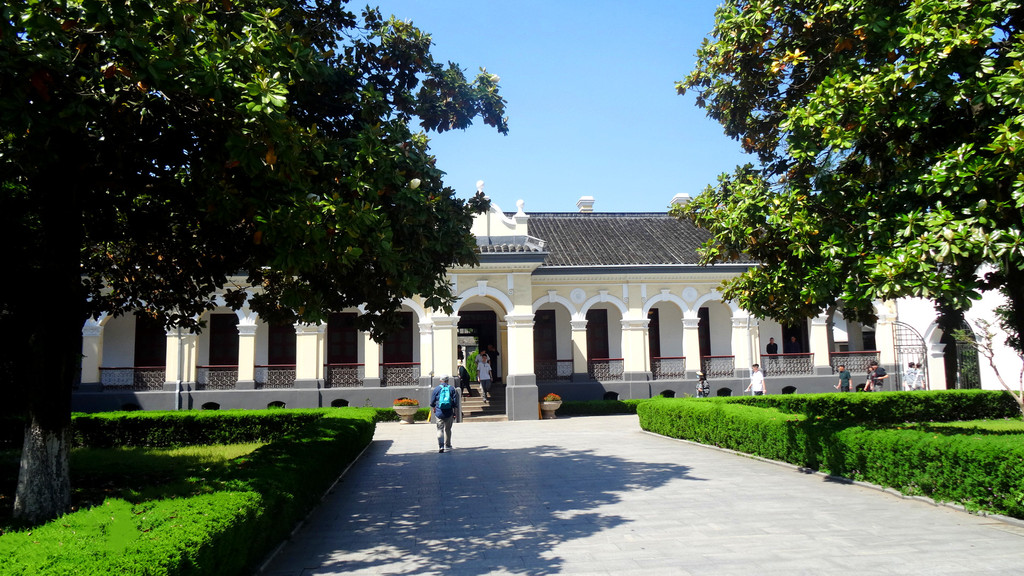 西花厅。20世纪初期,南京的一些建筑受西方折衷主义建筑思潮影响,都争相效仿西方建筑形式,并以此为荣。这幢黄色西洋式平房是典型的仿意大利文艺复兴式样,始建于清两江总督端方任上,竣工于末任总督张人骏。因位置在总督署的西面,故又称西花厅。整幢建筑坐北朝南,七开间。1912年1月以后成为中华民国临时大总统办公室。