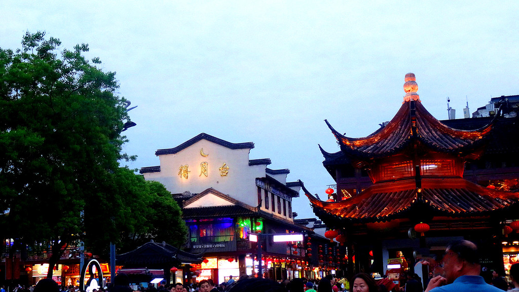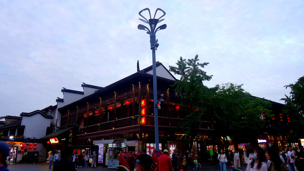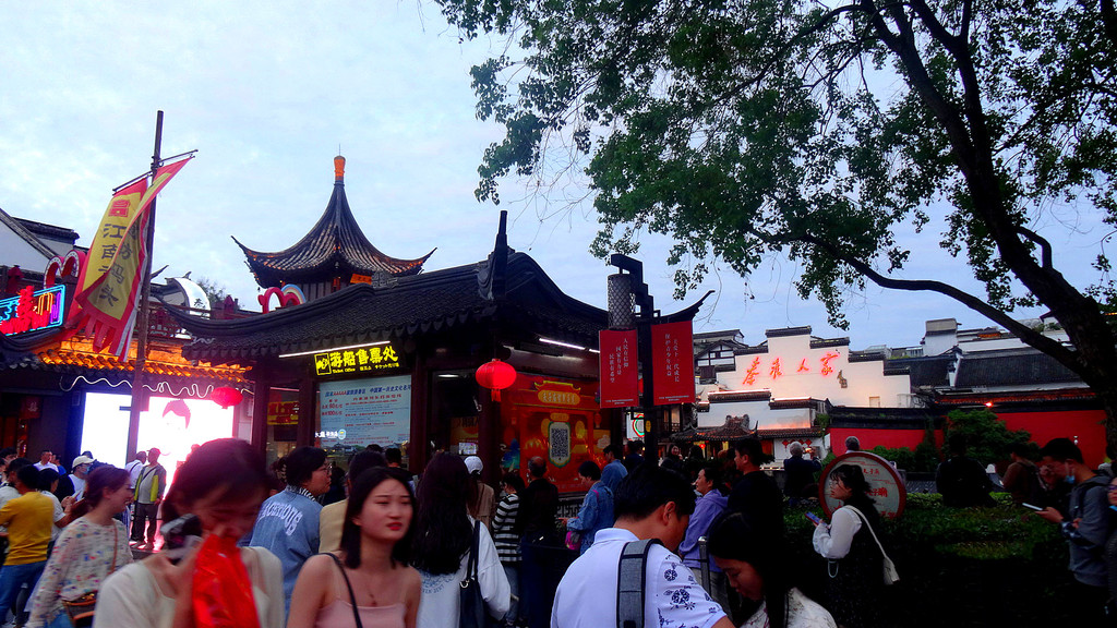 秦淮河景区入口处,真正的车水马龙,高高的马头墙给人江南徽派建筑的强烈视觉冲击