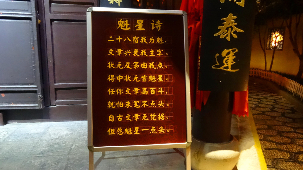 魁星阁。附“魁星诗”一首 —— 二十八宿我为魁,文章兴衰我主宰。状元及第有我点,得中状元靠魁星。任你文章高百斗,就怕朱笔不点头。自古文章无凭据,但愿魁星一点头。