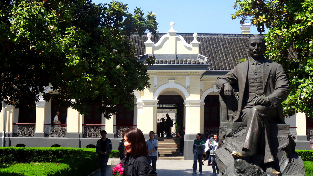 温馨提示,进入祭堂是不允许拍照的。祭堂中央供奉孙中山坐像,高4.6米,是世界著名雕刻家保罗朗特斯基在法国巴黎用意大利白色大理石雕刻而成,底座镌刻六幅浮雕,是孙中山从事革命活动的写照。孙中山先生身着长袍马褂,高额广颐,手持一本长卷,那凝视着前方的深邃目光,给肃立于此的人们以难忘的启迪。