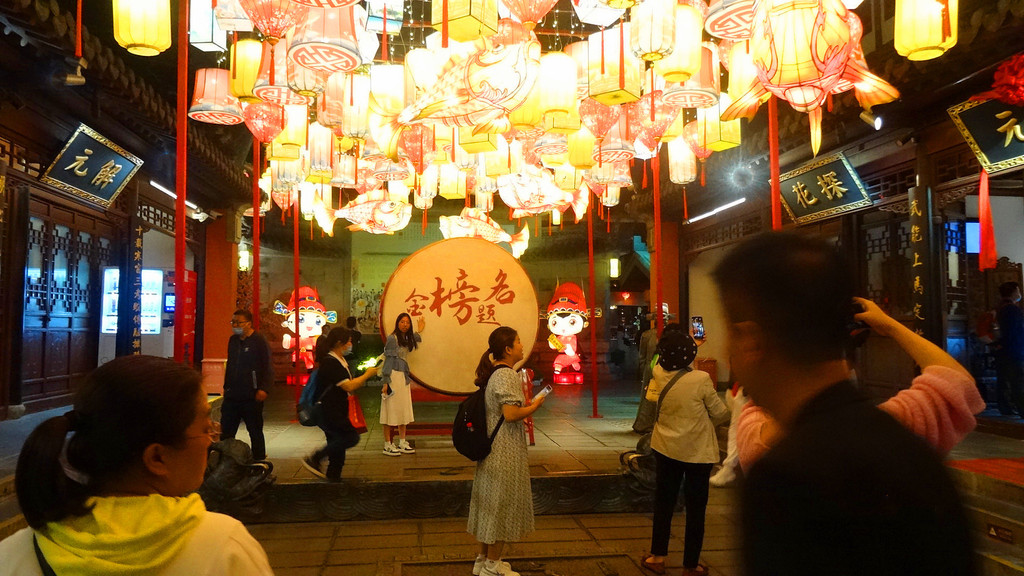 等待乘坐游船一览十里秦淮河的游人只就适合一个词—翘首以盼,原以为没有机会了,再一打问还是有票的,只不过是套票,没有单独的乘船票了,也就是说乘船票,特别是晚上的,你的提前预定,到时到点了肯定是没有了。没有丝毫犹豫就买了套票(包括在购票处二楼顶戴VR眼镜一览古今秦淮河盛景,中国科举博物馆),因为不在秦淮河上体验一下来南京又有何意义呢。
