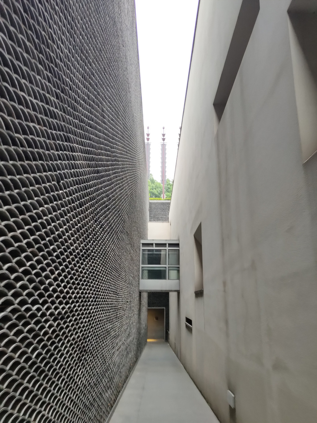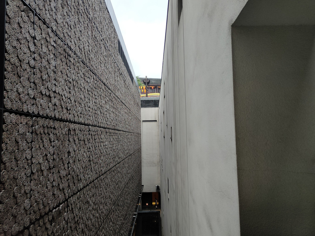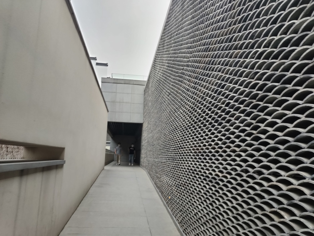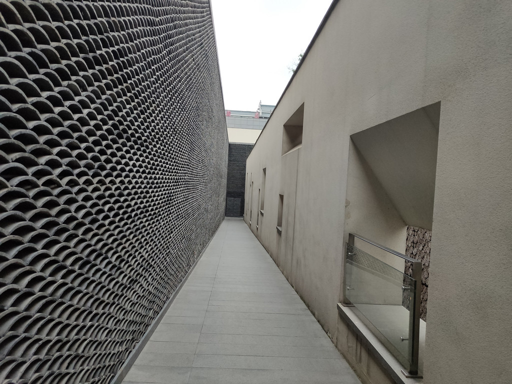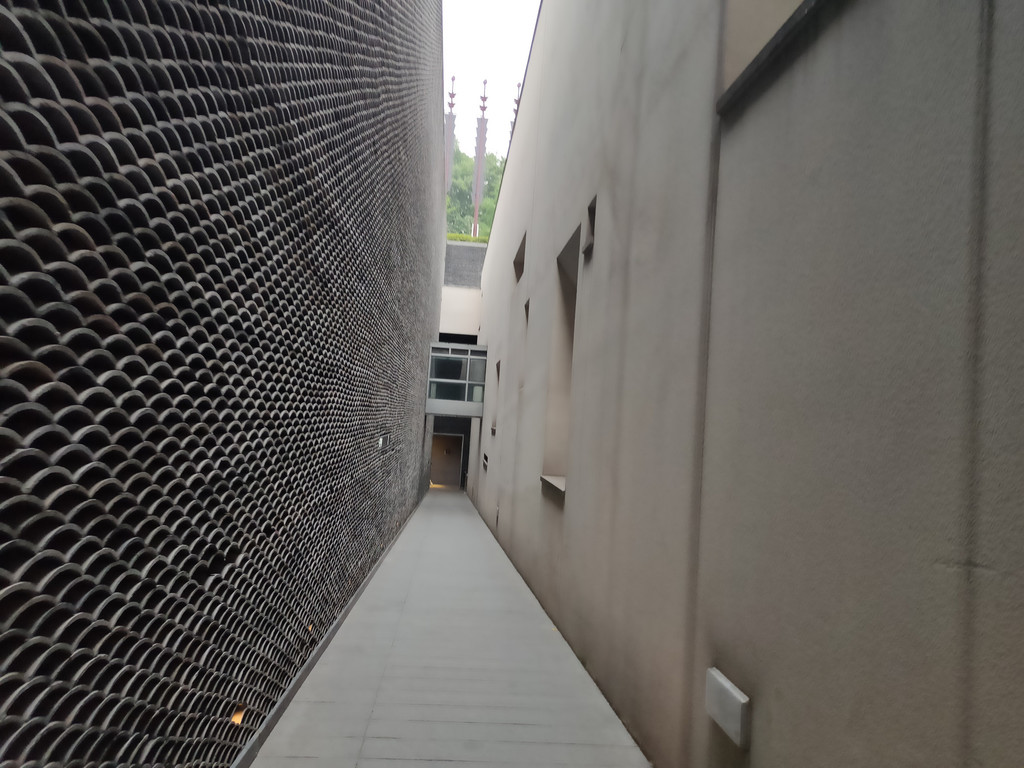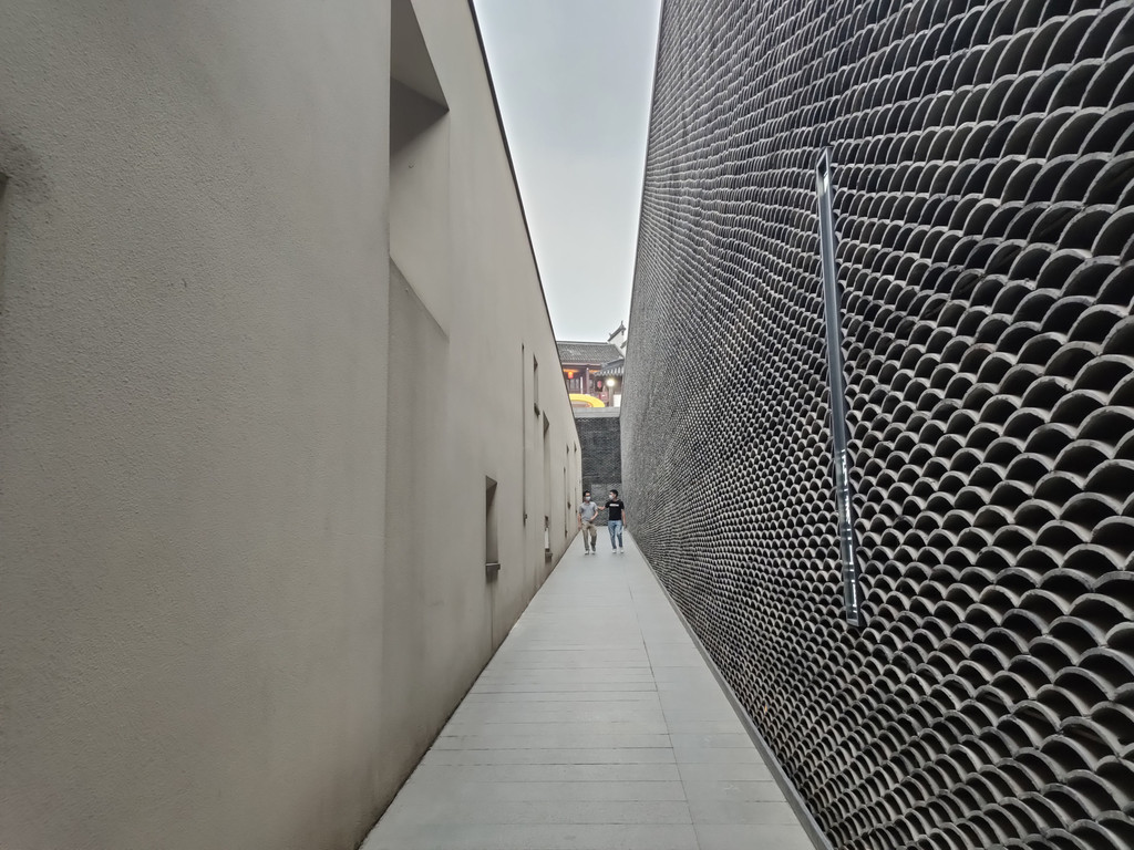 坡道两侧的墙面很高,因为130米的距离显得格外长。或许是因为层层的瓦片,让我们多少有点高山仰止的感觉,心中自然会涌现出肃穆的感觉,连脚步都下意识地放轻了几分。
