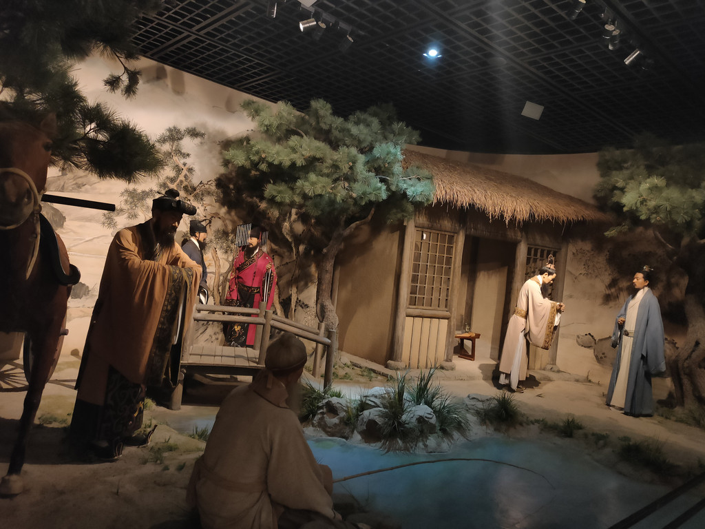 展区里布置了很多模型场景,有周文王在姜太公钓鱼的地方拜访的,有刘备三顾茅庐的……因为没有说明的牌子,但是我想大概是这些场景。