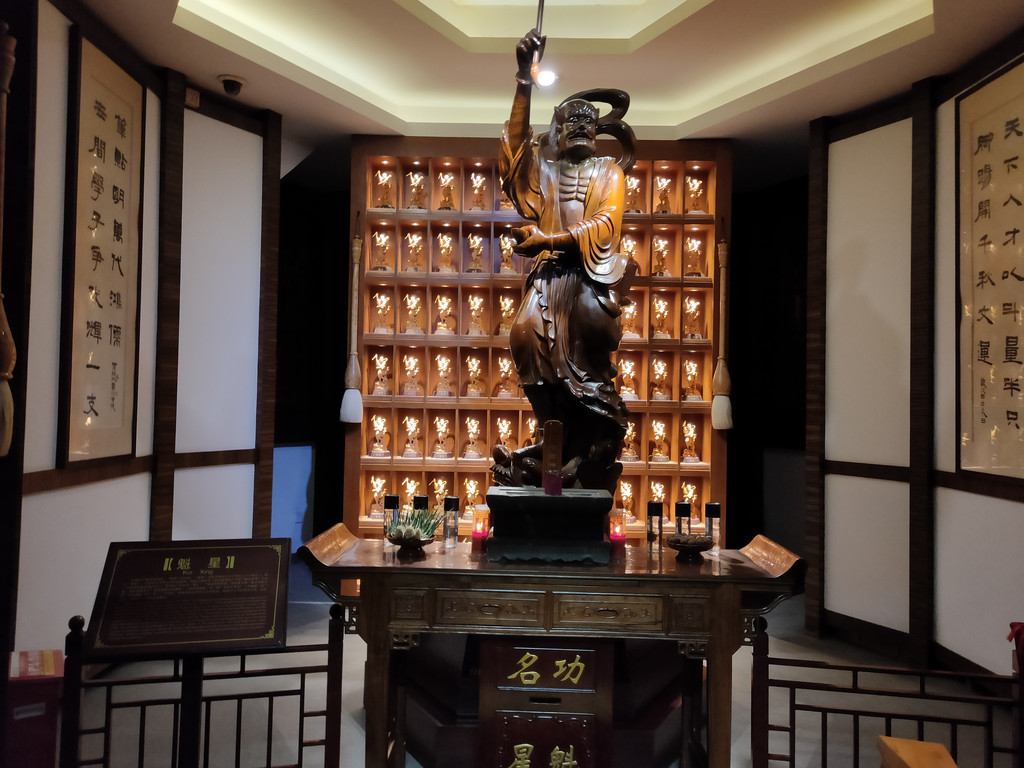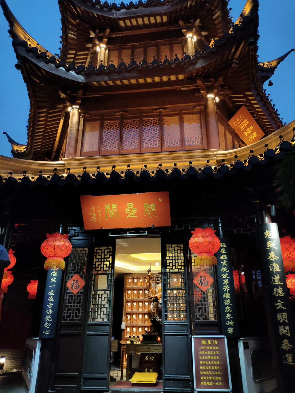 回到门口往西北方走,是贡院的另一座主要建筑魁光阁。三层飞檐,供奉魁星。这位星君是中国古代星宿之一,主管的就是功名。历代考生,不管信不信,都是要来拜一拜的。