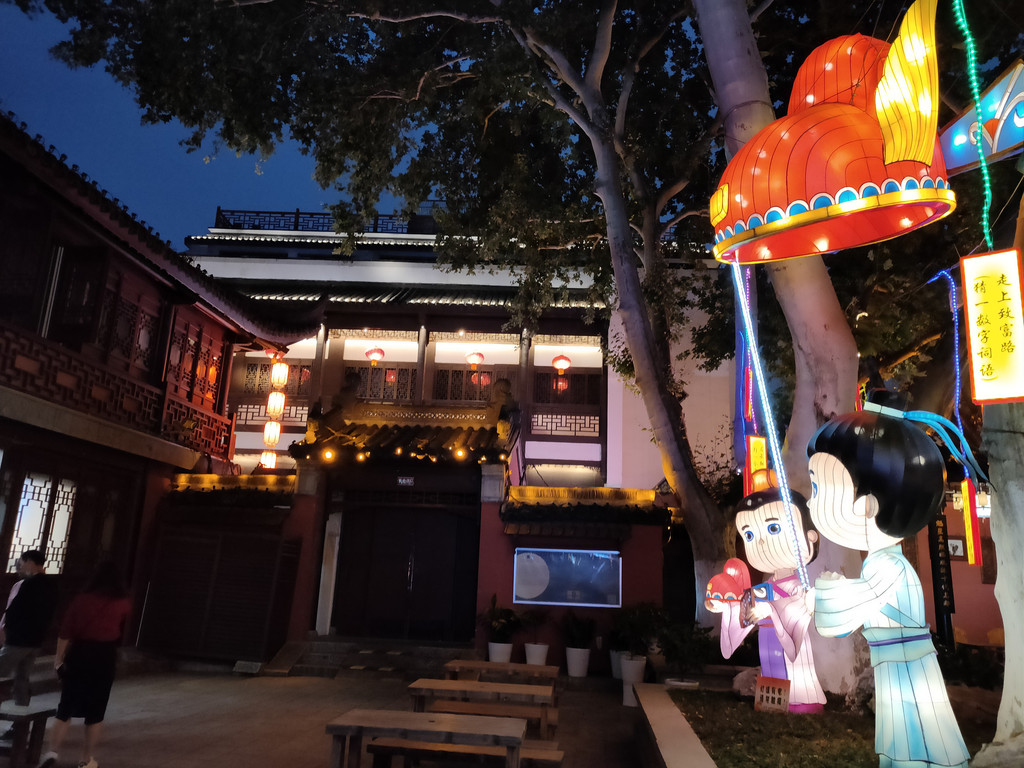 我们来得很巧,适逢秦淮灯会举办期间,贡院也是秦淮灯会的举办地点,所以很有幸能在游览贡院的时候,还能领略秦淮灯会。这期间,晚上的贡院也会很热闹。金陵女子书院前面的广场上,还摆放着很多摊位,是江南贡院手工坊,可以购买一些颇有意思的纪念品。