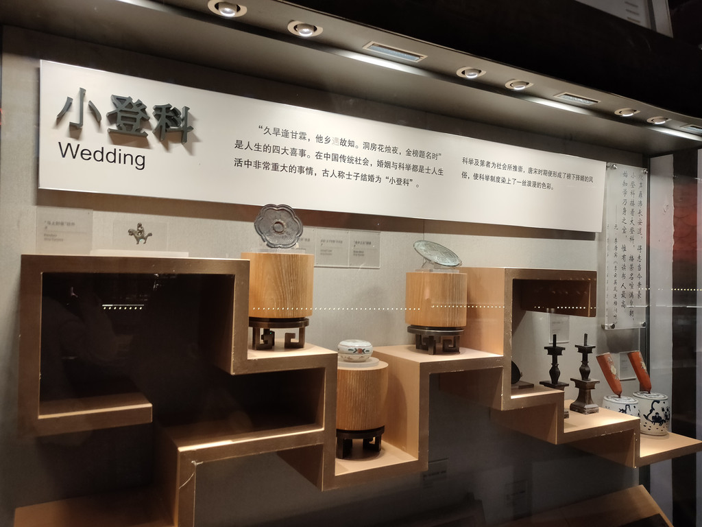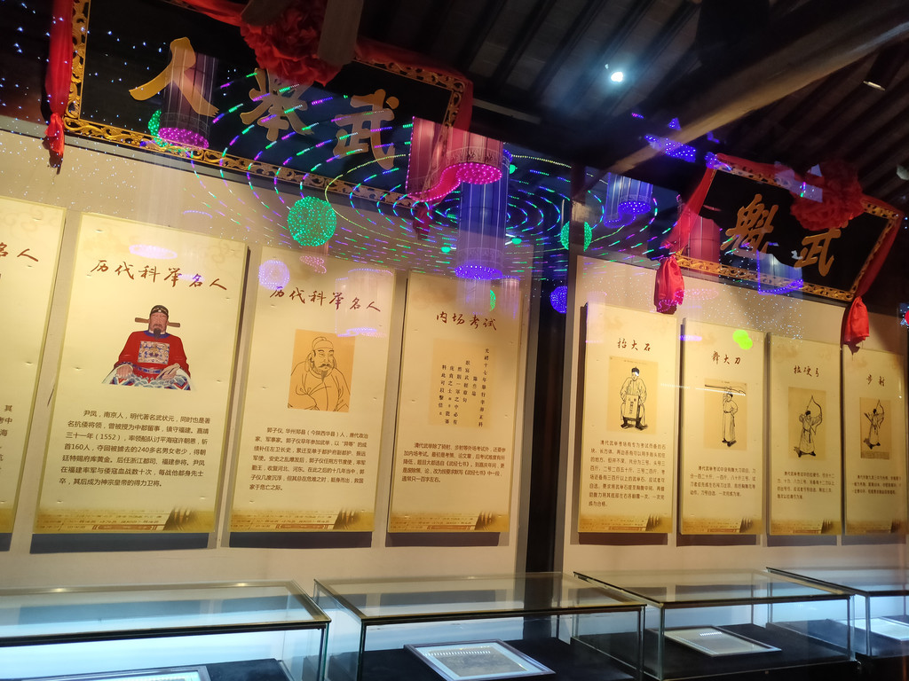 凑近读了说明,才知道这一溜儿说明牌是介绍武举的,而郭子仪正是武状元出身,功名赫赫。他的两侧就是明清科举中的武状元和武举考试的介绍。虽说是武举,那也是有文试的,但是文试比较简单,不必有花团锦簇的文章,只要能够默写《武经七试》中的一段即可。也就是说,至少认识字,能写。