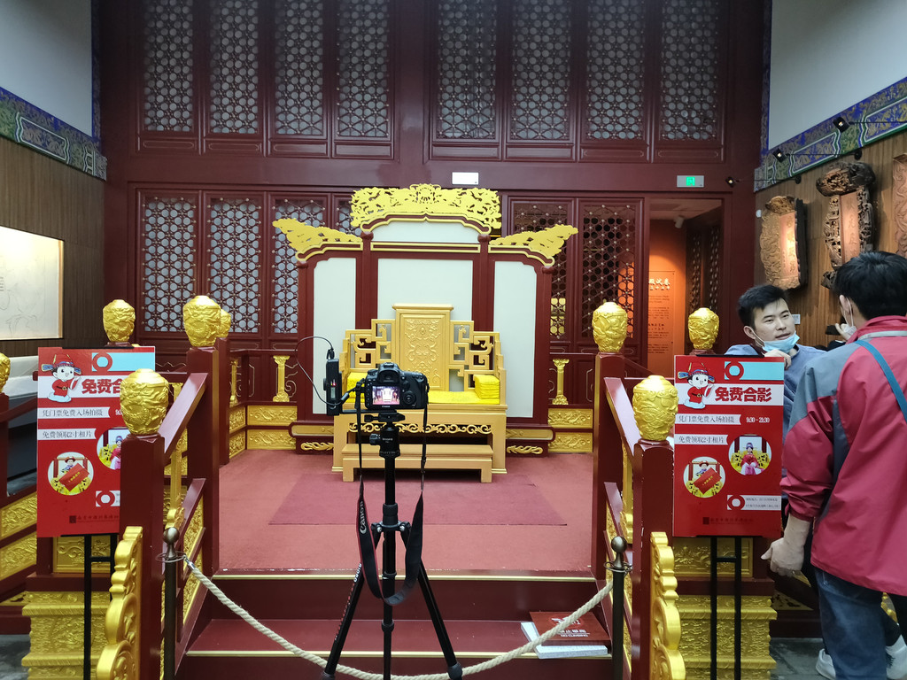 还有一处免费合影的场景,中间是金黄色的龙座,这是让游客体验殿试主考官的感觉?不过参观的游客大多只是看两眼,并没有合影的意思。这是故宫的保和殿,中央七级高台,明朝大典或册立皇后、皇太子时,为皇帝更衣、受贺的地方。这里,也是每科殿试的考场。