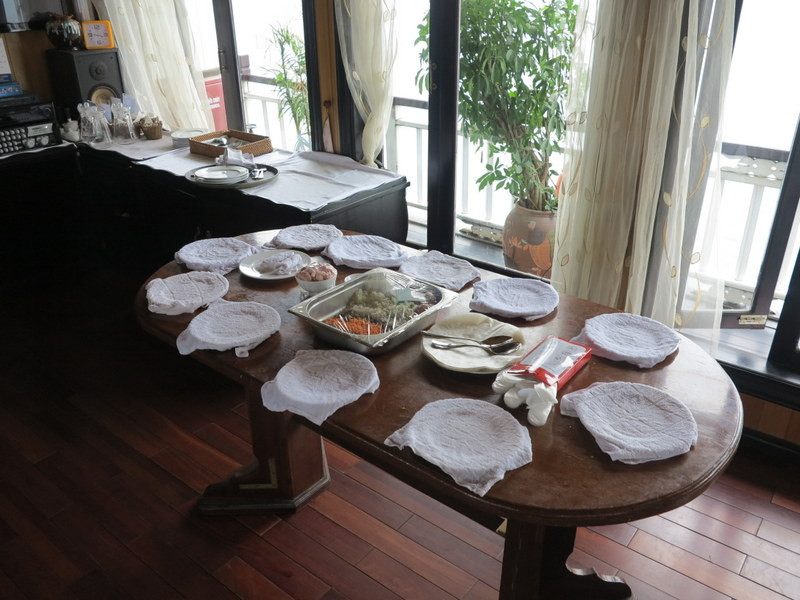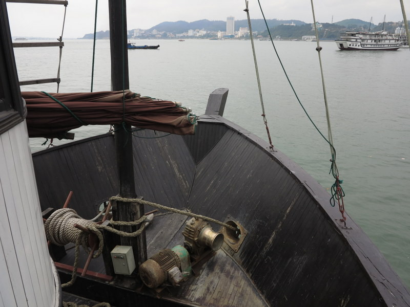 准时回到船上,导游帮助我们联络了回河内的车,一切还顺利。学学如何制作越南春卷,在甲板上发发呆,下龙湾的行程在午饭后结束了,过于休闲,让我和老婆很不 适应。