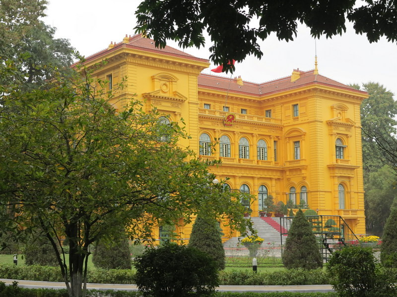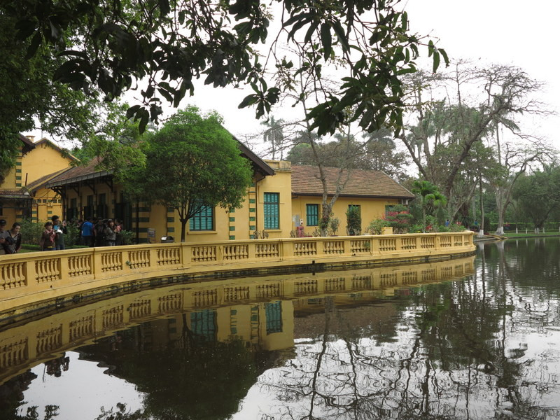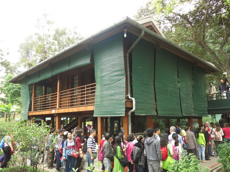 墓西北是胡志明在河内的旧居,队伍很长,中国团队游客众多,20千的门票不贵,步入旧居区域,地盘很大,首先看到的是豪华的法式大楼,这里是以前的总督府,胡伯伯拒绝入住这里,只在这里后面的高脚屋居住,这里现在是政府开会的地方。