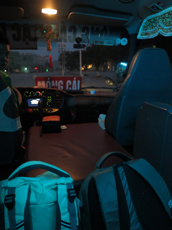 第二天早早起床,前台换人了,新的小弟知道我们的需求,直接帮我们结帐打车,出租司机收了比前台说的稍多的车费,直接带我们到了车站前的一个小巴上,上车 了,下龙湾是我们的目的地。提前一天过境入住芒街的目的达到了,要是8点过境真的来不及在中午前赶去下龙湾。