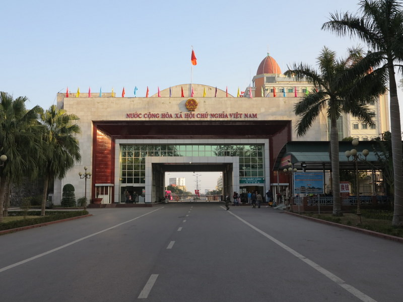 之前在买电话卡的大妈处得知,越南入境需要小费,而且价格惊人,平均每人要一百元左右,比网上的攻略写的还要邪门。据说东兴是越南海关收费最混乱的地方,他 们的收费对象是中国自由行旅客,还有来往贸易的边民,欧美和团队游客是不收的,另外在凭祥友谊关只是明码标价的每人十元,这里是漫天要价,真的是无奈啊! 带着忐忑,老婆一脚跨两国的拍照留念,终于来到了越南海关门前。盖章还算顺利,接着一个越南大妈以要健康证的名义要钱,一人五十,之前和老婆就说好,我们 就准备一百元打点这些小鬼。好吧!看在大妈态度还想就给了她。接着准备离开时,一个中年男子穿着制服,以要求验看护照为名继续要钱,这下我和老婆都火了, 直接拒绝,大吵大闹,制服男子居然还要威胁我们,但看到我们的严厉拒绝也有点没办法,只是拿着我们的护照左看右看,直到后面来了三位新的过境游客,他担心 我们的吵闹影响了他收下一批游客的生意,只好还给我们护照放行了。事后知道那三位游客果然给他钱了,越南海关真黑。
