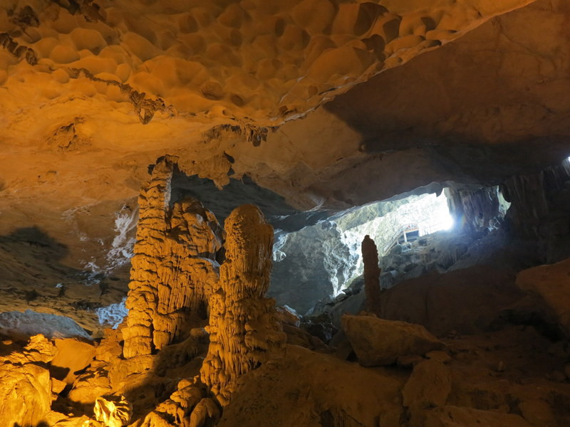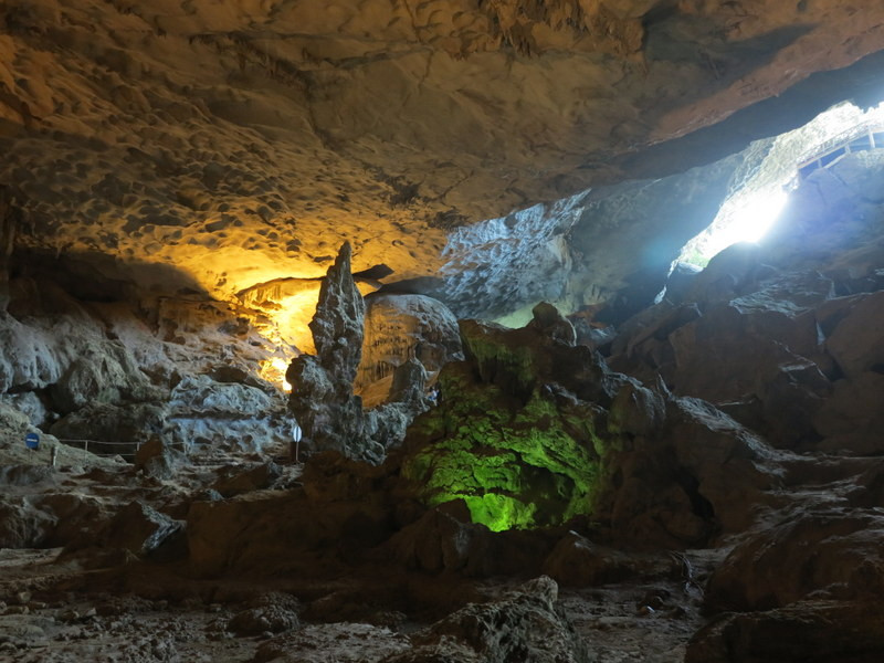 洞窟有三层,一层比一层大,洞内也算比较漂亮,海洋的侵蚀痕迹明显,也算鬼斧神工,有些石头也可以意会 一些人物和故事。尽管对于中国的溶洞,这里自然不算啥,但在洞口眺望下龙湾可以看出千岛湖的感觉,也算是惊讶啊!