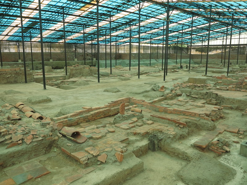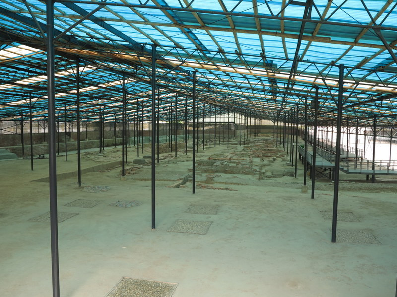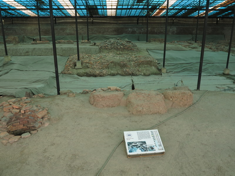 看看皇城,这里分两部分,第一部分的历 史不算悠久,都是在用的房子和城楼,有些房子在战争中还当了指挥部。离开第一部分,穿过马路,进入皇城的第二部分,这里是遗址区域,面积还算大,发掘现场的感觉还是不错的,走走看看,没啥人,就是解说居然全部越南文,这个也 太不专业了吧!只好连蒙带猜,看了个大概。下水道,门楼,水井遗址也算清晰,有点感觉。