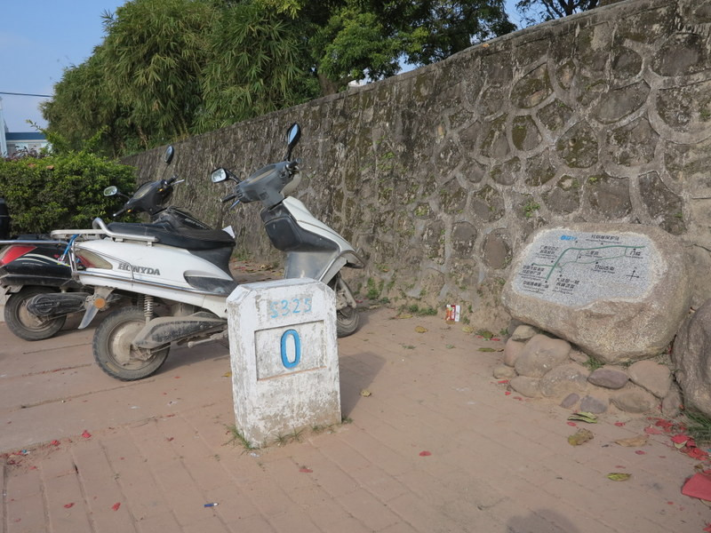 穿过省道路口的大清国一号界碑的牌坊,但到真的界碑还有三公里左右的路程,由于是过年,路边也没有三轮车,只能和老婆徒步前行,好在不久就看到了拉客的小 巴,谈妥价格,在界碑等我们玩完,送我们去东兴国门,车费也不算太离谱权当春节发红包了。司机熟门熟路的吧我们拉到了325省道的终点,这里中间有个军 营,右手边就是五七堤和北仑河口,河口停着不少渔船,这里叫竹山港,陆地与海岸线的交界点,没有震撼,更多的是一种平静和生活,边境公路的起点标志也在这 里。