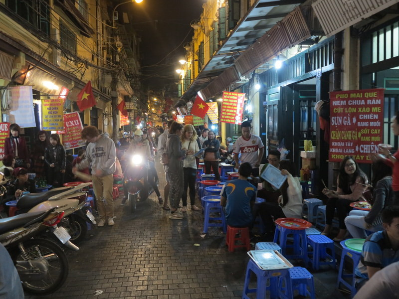 河内是越南的首都,车道环剑湖边,这里的热闹超过了我们的想象,西方老外占了多数。步入酒店,酒店装修很有欧式风格。一杯迎宾茶,一块毛巾,一张导游图,详细的叙说了这里游览路线。前台直接带我们进入房间,一切是那么自然,舒服。办完入 住,卸下行李,准备出去走走。这里地处环剑湖边,周围就是三十六行街,后来发现,这里其实就是以前各个行业的聚集地,有的一条街都是做衣服的,有的都是卖 咖啡的,有的都是卖啥的,以这些特点来命名一段段的街道,形成了整个三十六行街区域,小巷都不长,但有点曲折,会有点晕,但地图还是很清晰的。路边的越南 粉尽管是游客价格,但味道还是不错的,吃的同时还能遇到一路往南的背包客同乡,背着打包吃牛肉粉,吃完要去赶火车,继续往南,年轻就是好。一点点粉,一点 点卷粉外加路边的一点点越南小吃,这样的一顿凌乱的晚餐也是很满足的。