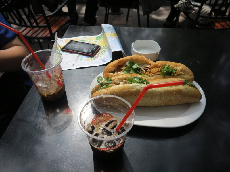 转过街角,看到了高地咖啡店,两杯咖啡,两个三明治法棍,都是越南特色,40人民币不到的价格更是亲民。