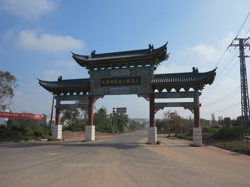 江南车站没有运德的车,这里是超大集团的地盘,运输也算规范,准时发车。G325以前去北海走过,但这次有好长一段在修路,车速不快,司机说要三个半小时,春节路上的人车都不多,一路前行看看窗外难过的山水。防城停了一站,接着就直奔东兴了。之前和司机打了招呼,我们去看一号界碑,中国陆地边境和海岸线的交 接点—北仑河口。车过防城,走在S325上,在离东兴还有8公里的路边就是大清国一号界碑的景区,司机师傅把我们放了下来,这次旅行的第一站到了。