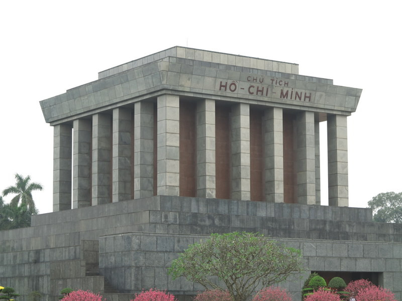 还没走入广场就看到了西侧高耸着胡志明主席的陵墓,胡志明在 越南人们叫他胡伯伯,这里有胡伯伯的水晶棺,由于不开放没法瞻仰。