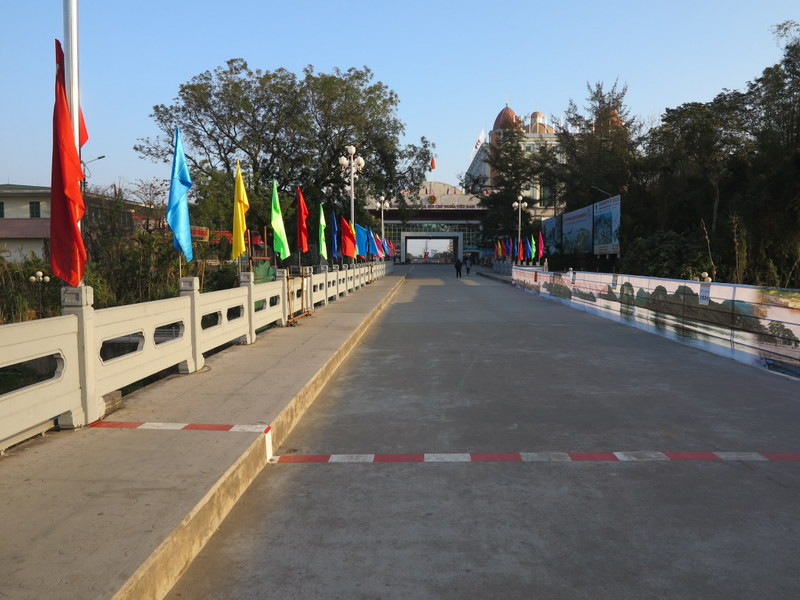 过年的芒街路上没有人, 商店都关门,沿着边境线走,不多时跨过一座桥,步行到了大南宾馆。