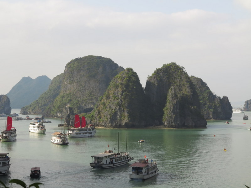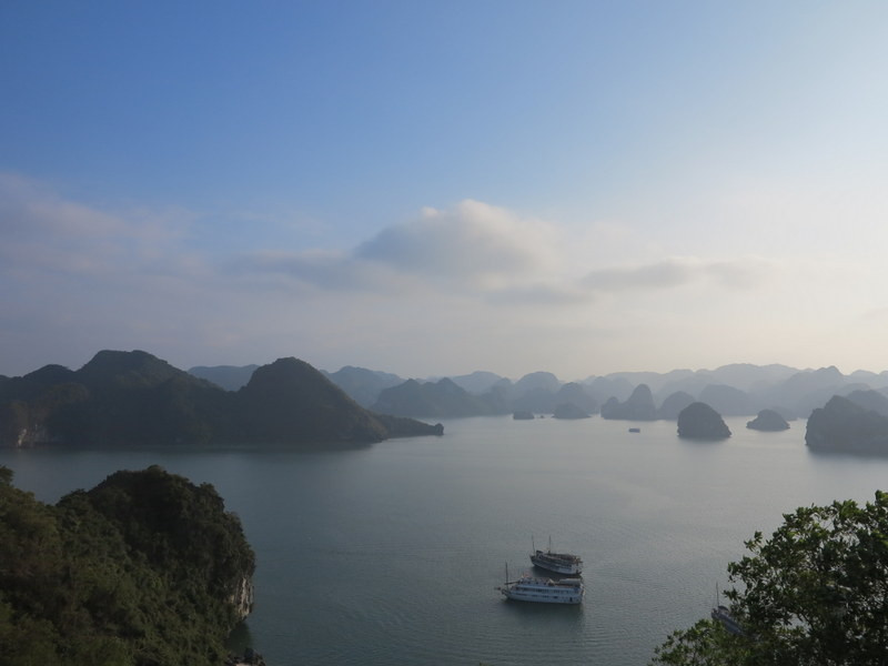 回到船上继续休闲,不久船到一处海滩,这里理论上可以游泳,但由于越南的环境保护还是需要加强,所以还是爬山比较合适,一路徒步爬上这个小岛的最高峰,看看周围的下龙湾,不说震撼,漂亮还是有的,休闲舒服是坐船的基调啊!